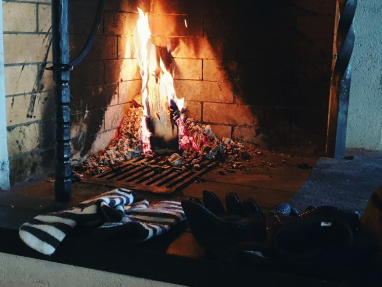 벽난로 앞 흔들 의자에 앉았다. 모닥불이 자작자작 타고 있었다. 그 앞에 우리의 젖은 장갑들을 펼쳐 놓고 말렸다. 그리고 추위 때문에 방전된 핸드폰도 녹이려고 먼 불가에 올려 두었다.