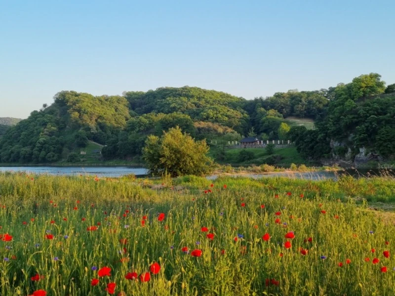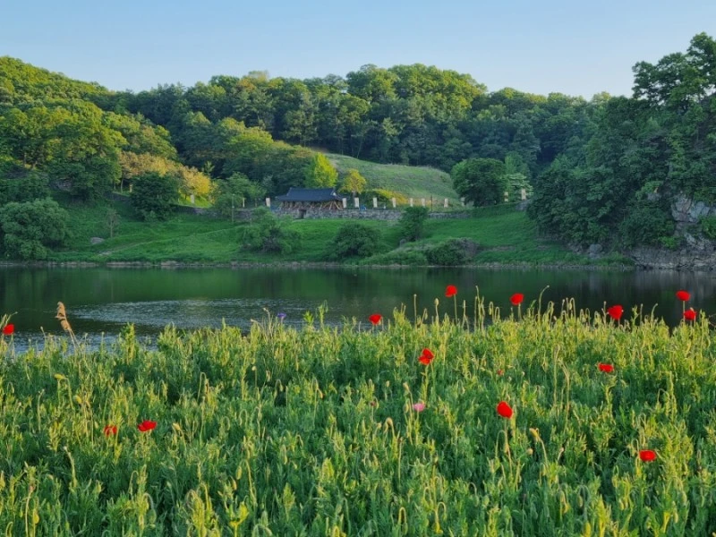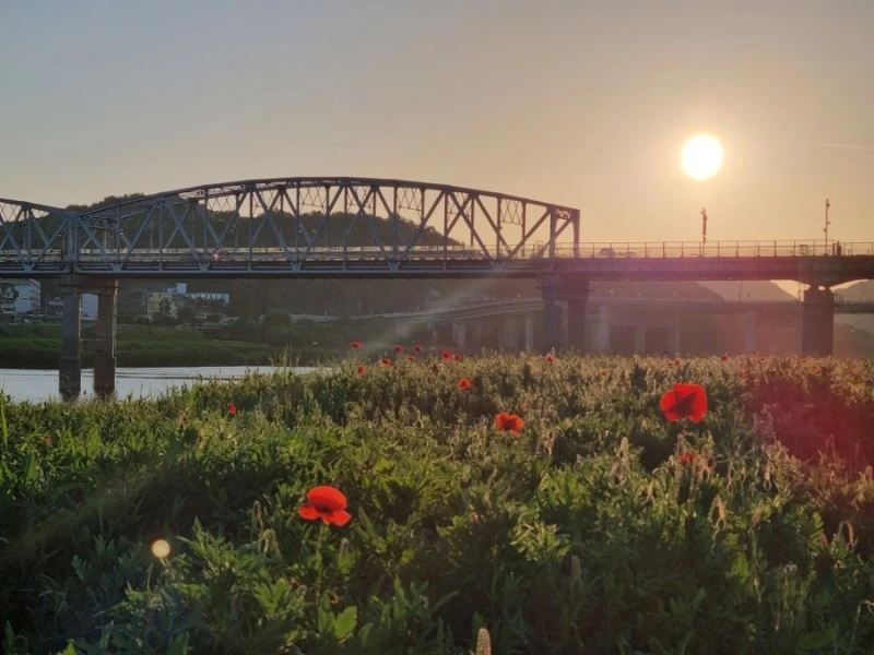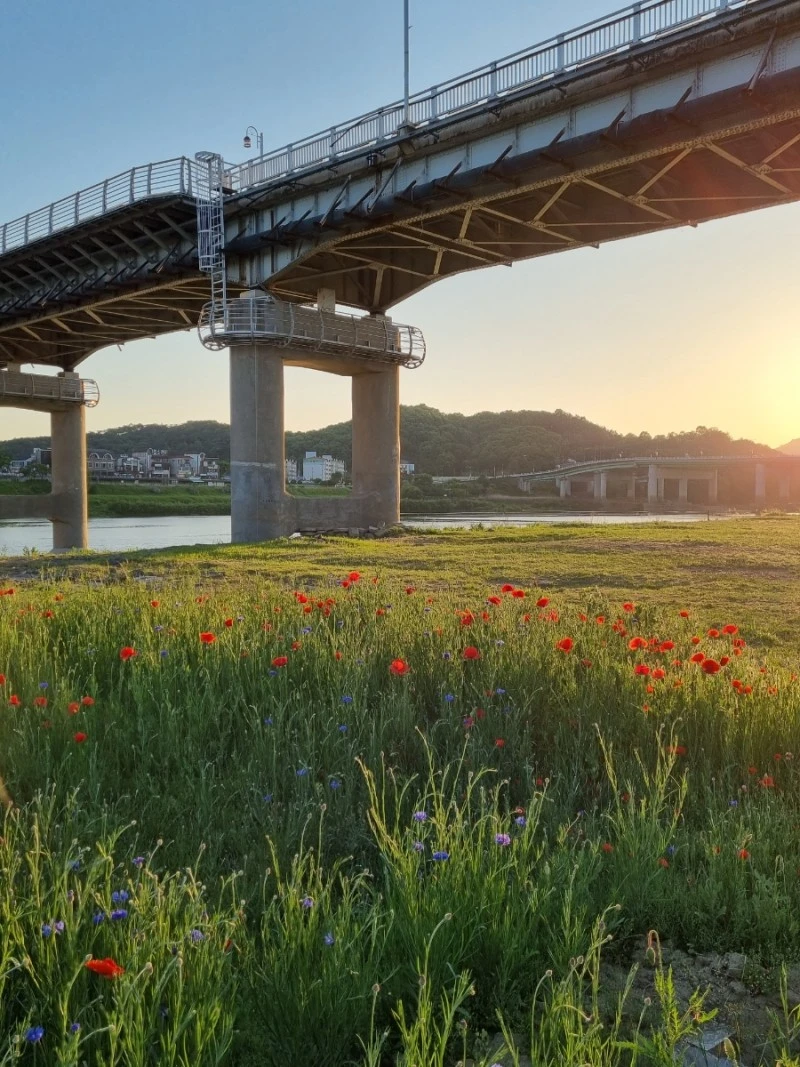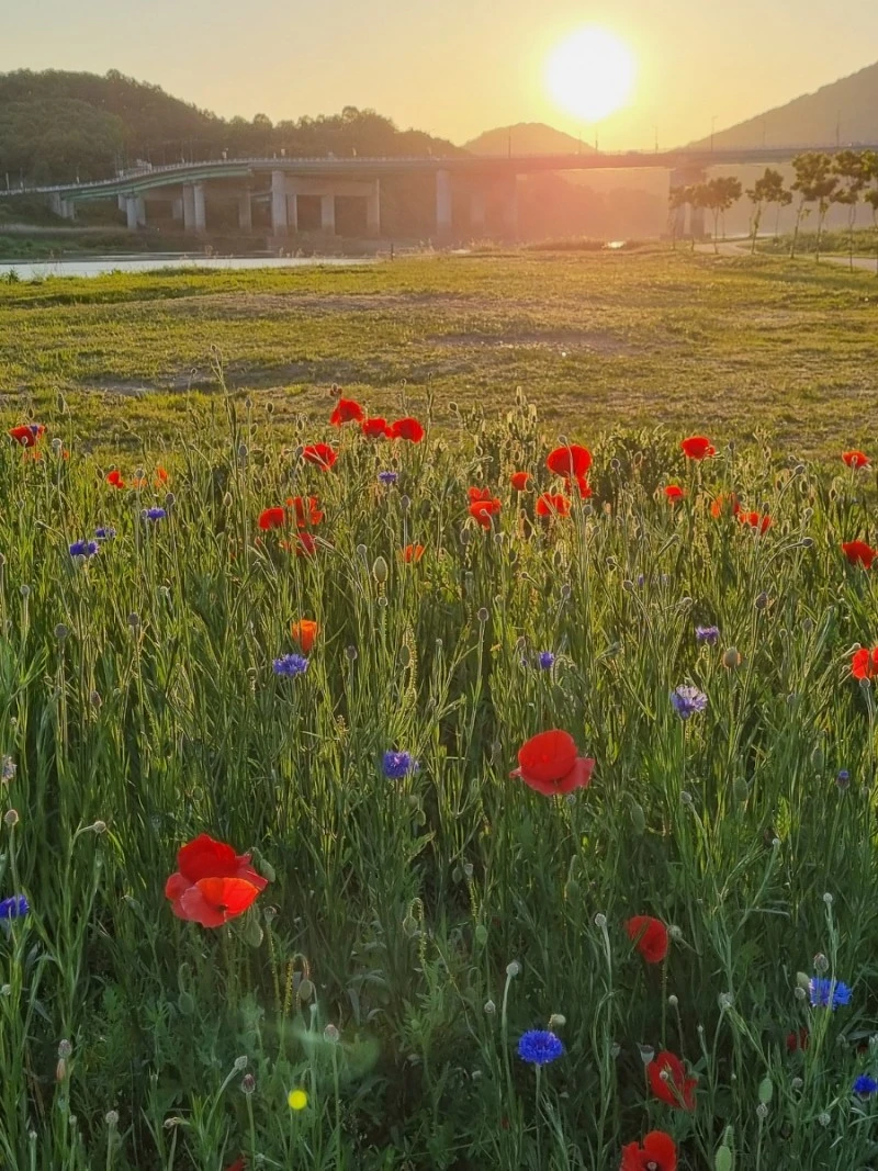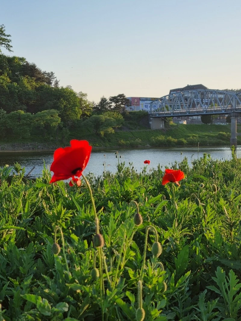 내가 그림을 잘 그릴 줄 안다면 이 노을빛 머금은 꽃밭을 화폭에 담았을 것 같다. 바람에 가느다른 양귀비 줄기가 흔들리고 커다랗고 얇은 꽃잎들도 흔들렸다. 그리고 멀리 보이는 금강의 푸른 물줄기와 공산성, 공주는 참으로 아름다운 도시구나 다시금 생각했다.