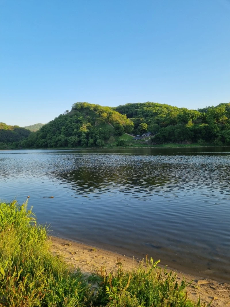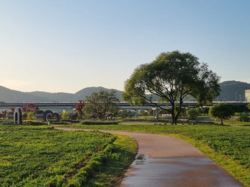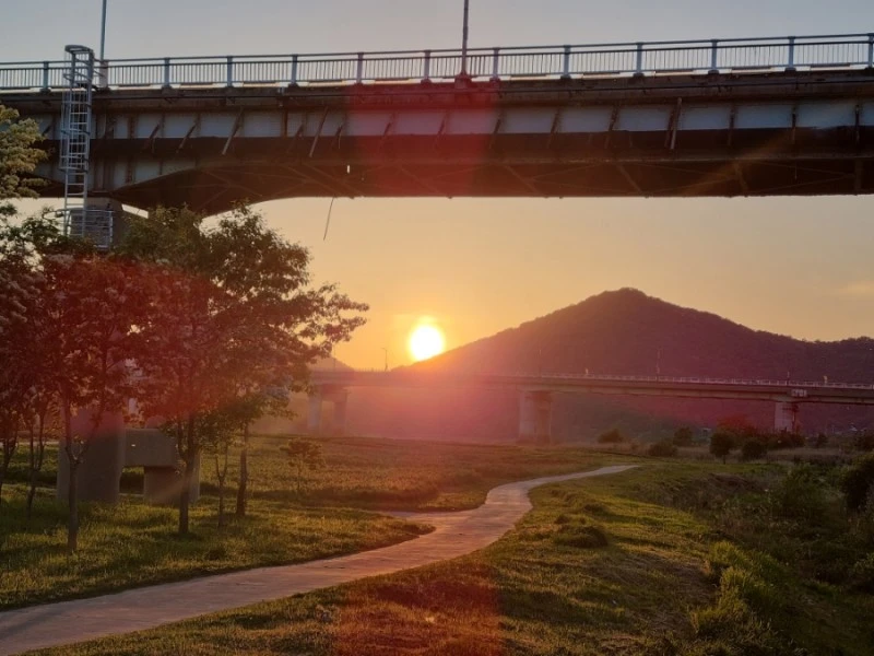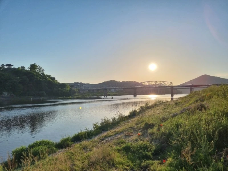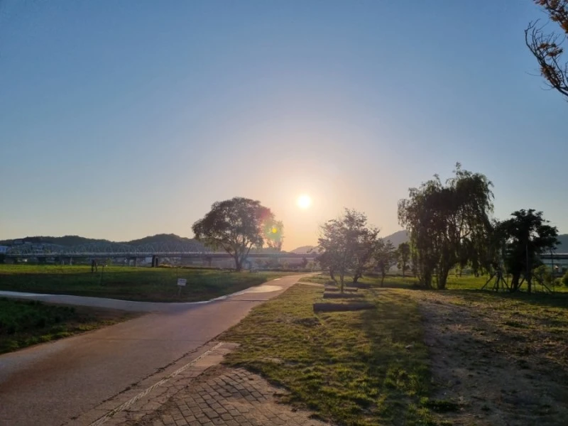 공원에는 넓다란 잔디밭이 펼쳐져 있었다. 공원 끝쪽으로는 금강이 흘렀고, 그 금강 너머로 줄줄이 성벽이 이어진 공산성이 보였다. 해가 저물고 있어서 강도 붉게 물들어가고 있었다. 둥그런 해가 강 위에도 둥그렇게 자국을 남겼다.