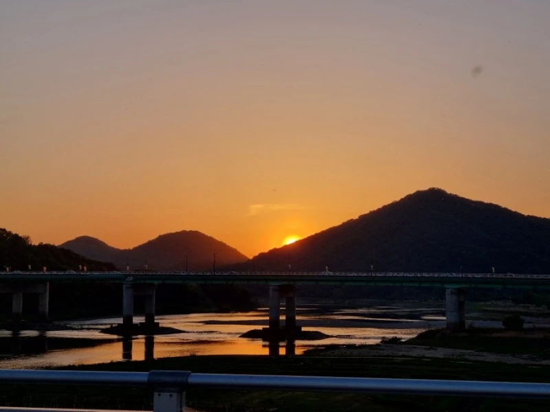 우리는 공산성에 가는 길이었던지라 금강을 건널 수 있는 금강대교를 건너기 위해 다시 공원을 되돌아갔다. 해는 거의 다 저물어서 하늘이 붉게 타오르고 있었다. 금강이 주홍빛으로 물들어서 아름다웠다. 곧 해가 저물테니 서둘러 공산성으로 향했다.