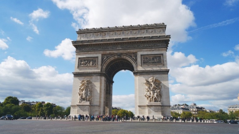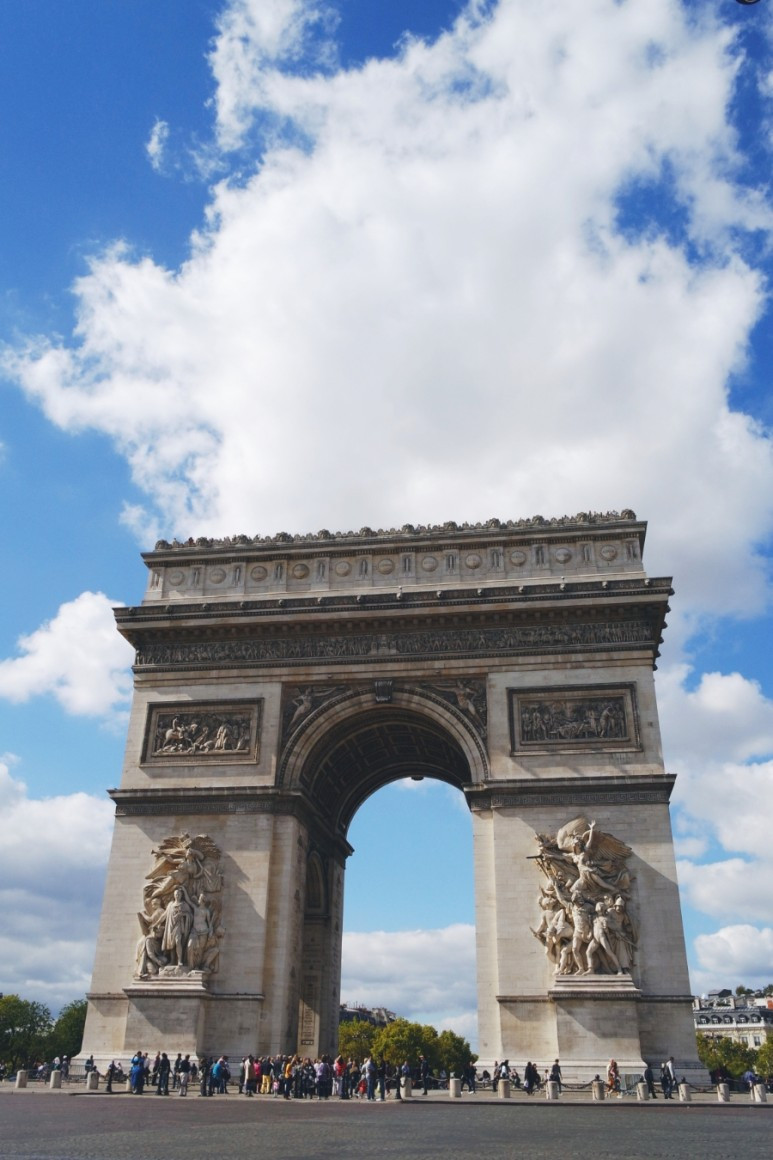 거대한 아치 형태의 문이 보이기 시작했다. 아, 저 문이 바로 개선문이구나! 사진으로만 보았던 거대한 문을 실제로 보게 되니 감격스러웠다. 시야를 가리는 다른 건물들이 없어서 개선문 뒤로 보이는 푸른 하늘과 구름이 얼마나 드높아 보이던지 모른다.