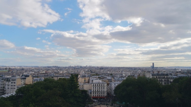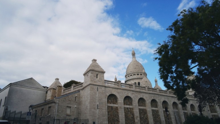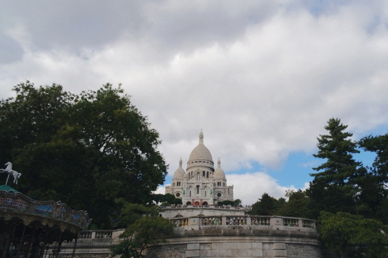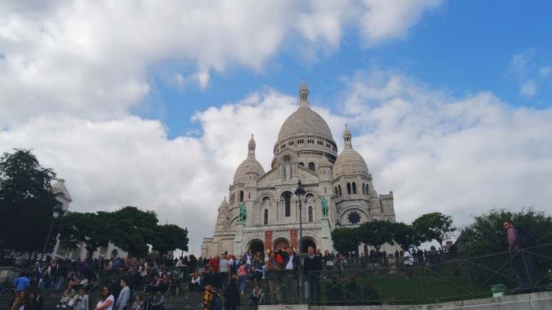 역시나 사람들로 북적이던 몽마르뜨 언덕. 하얀 사크레 쾨르 대성당은 여전히 멋있었다. 저번에 찾아왔을 때와는 다르게 새파란 하늘에 하얀 구름들이 깔려 있어서 풍경이 더 운치있었다. 동행 언니가 성당과 함께 사진을 열심히 찍어 주어서 이곳에서 기념 사진들을 많이 남겼다.