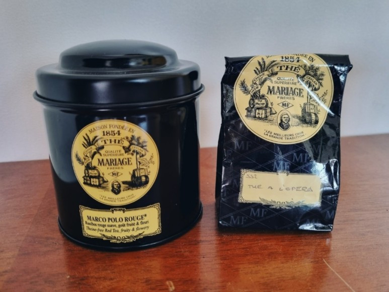 나도 얇은 포장지에 담아 가져가는게 낫겠다 싶어서 직원에게 고른 티 중 하나인 '더 오페라'를 그람단위로 포장해달라고 했다. 그리고 마르코 폴로 루이보스는 기념삼아 틴케이스에 담긴 것으로 구입했다.