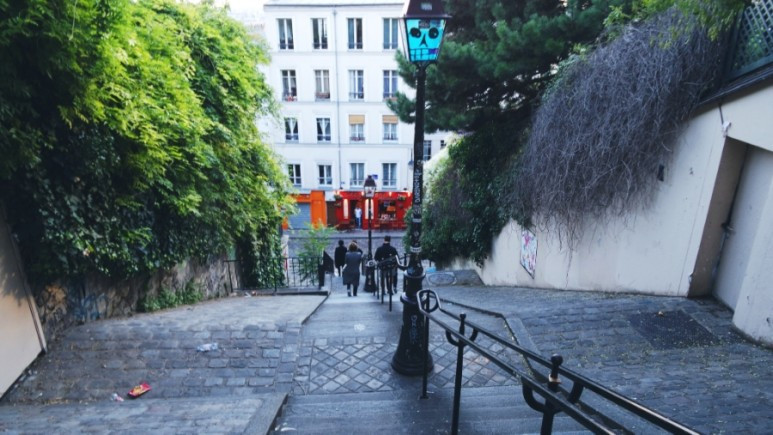 숙소에서 동행 언니를 만나 몽마르뜨 언덕으로 향했다. 저번에 내가 올라갔던 길과는 다른 길을 통해서 언덕 위로 올라갔다. 그런데 올라가는 길에 말로만 듣던 실 팔찌를 매주는 흑인들들을 만나게 되었다. 유럽 여행 카페에서 많이 보았던 실 팔찌 강매하는 흑인들을 정말 보게 되다니, 엄청 겁먹은 상태로 계단 위를 올라갔는데 다행스럽게도 우리에게는 실 팔찌를 매어 주지 않았다. 하하. 내가 너무 과민반응을 했나?