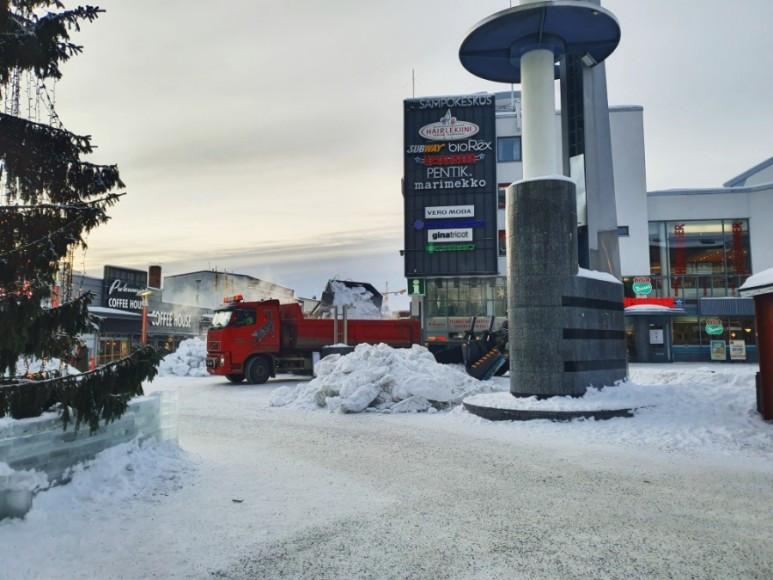 버스를 타고 로바니에미 시내에서 하차한 우리는 마트를 찾아서 걷기 시작했다. 커다란 빨간 차가 돌아다니며 제설 작업을 하고 있었다. 덩어리진 눈들이 여기저기 가득했다. 이렇게 많은 눈들을 덜어 내었건만 도시는 여전히 눈 속에 덮혀 있는 것 같았다.