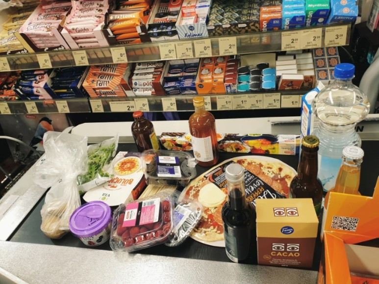 하나둘씩 주워 담다보니 카트 안에 물건들이 점점 쌓여갔다. 장을 다 보고 계산할 때 계산대 위로 물건들이 가득찼다. 누가보면 여기서 며칠 더 머무르는 줄 알겠다. 오늘이 아쉬운 마지막 밤인데 말이다.