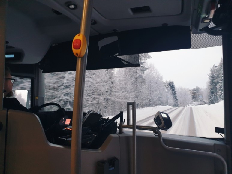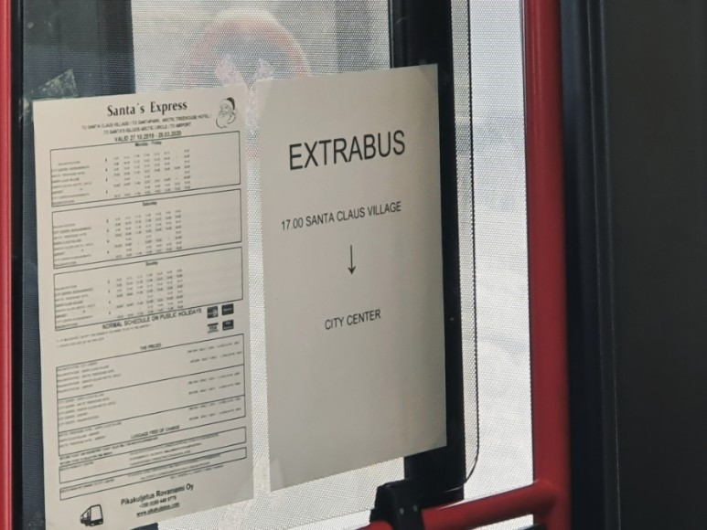 산타마을에 있는 버스 정류장으로 갔는데 운좋게 막 도착한 버스를 탈 수 있었다. 로바니에미 산타마을과 시내를 오가며 탔었던 버스는 항상 '산타 익스프레스'라고 적혀 있던 커다란 빨간 버스였다. 이번에는 산타 익스프레스가 아닌 일반 마을 버스를 타고 로마니에미 시내로 향했다.