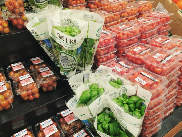 토마토가 진열된 곳에는 싱싱한 바질 화분들이 널려 있었다. 한국에서는 플라스틱 통에 든 바질 잎도 보기 힘들었데 로바니에미 마트에서 이렇게 생바질을 화분째로 파는 것을 보니 신기했다. 이 나라에서 바질은 대중적인 허브인가 보다. 바질을 좋아하는 나에게는 정말 부러운 일이다.