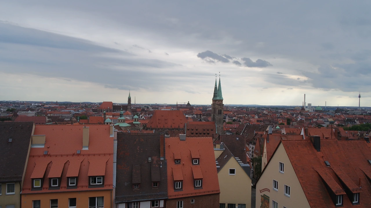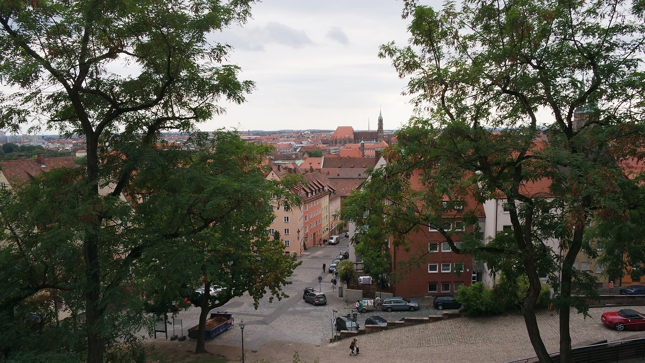 드디어 뉘른베르크 성에 올라왔다. 붉은 성벽에 기대어 뉘른베르크 풍경을 내려다 보았다. 이곳에 오기까지 겪은 고생스러웠던 일들이 머릿속으로 하나 둘씩 스쳐 지나갔다. 지나간 힘들 일들은 고작 몇시간 지났을 뿐인데도 먼 일처럼 느껴졌다. 날씨가 흐렸지만 내려다 보이는 광경은 무척 멋있었다. 짙게 깔린 구름들 아래 붉은 지붕들이 빽빽히 들어서 있었다. 중간에 불뚝 솟아오른 건물은 아마도 성 로렌츠 교회였던 것 같다.