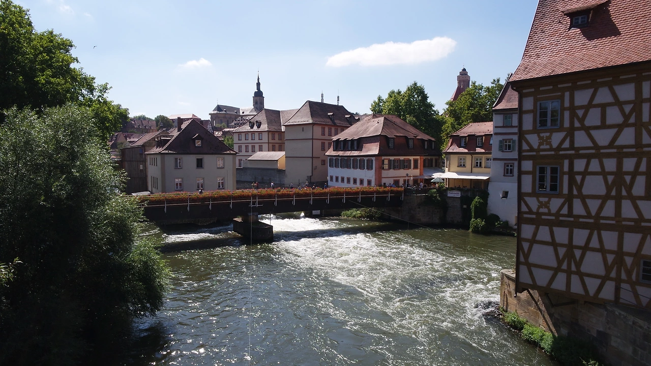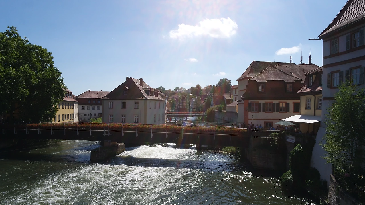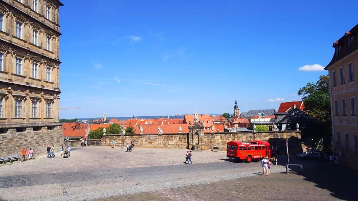 하늘은 무척이나 푸르렀다. 어제 구름 꽉 끼었던 뉘른베르크 날씨와는 천지차이였다. 8월의 끝자락 밤베르크는 따가운 햇볕이 쨍쨍 내리쬐고 바람 한 점 없었다. 너무 더워서 외투를 벗고 반팔 티만 입고 다녔다.