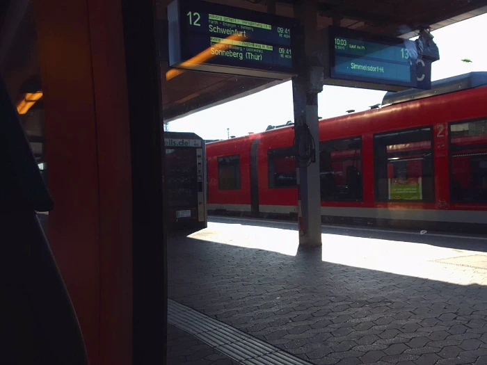 독일의 기차 관련 정보를 빠르게 알고 싶다면 핸드폰에 'DB Navigator' 라는 어플을 설치하는 것이 좋다. 나는 어플로 미리 밤베르크 행 기차 출발 시간을 확인하고 길을 나섰다. 허나 모든 것을 철두철미하게 준비해가도 꼭 빈틈이 생기는 법이다. 내가 타려는 기차는 오전 9시 41분 출발 기차였지만 아무리 기다려도 기차는 출발하지 않았다. 주위에 앉아있던 사람들 모두 기차가 출발하지 않았음에도 아무런 미동이 없었다. 우리나라 같았으면 열차가 왜 연착되었는가에 대한 열띤 토론이 일어나 시끌벅적할텐데 여긴 너무 조용했다.