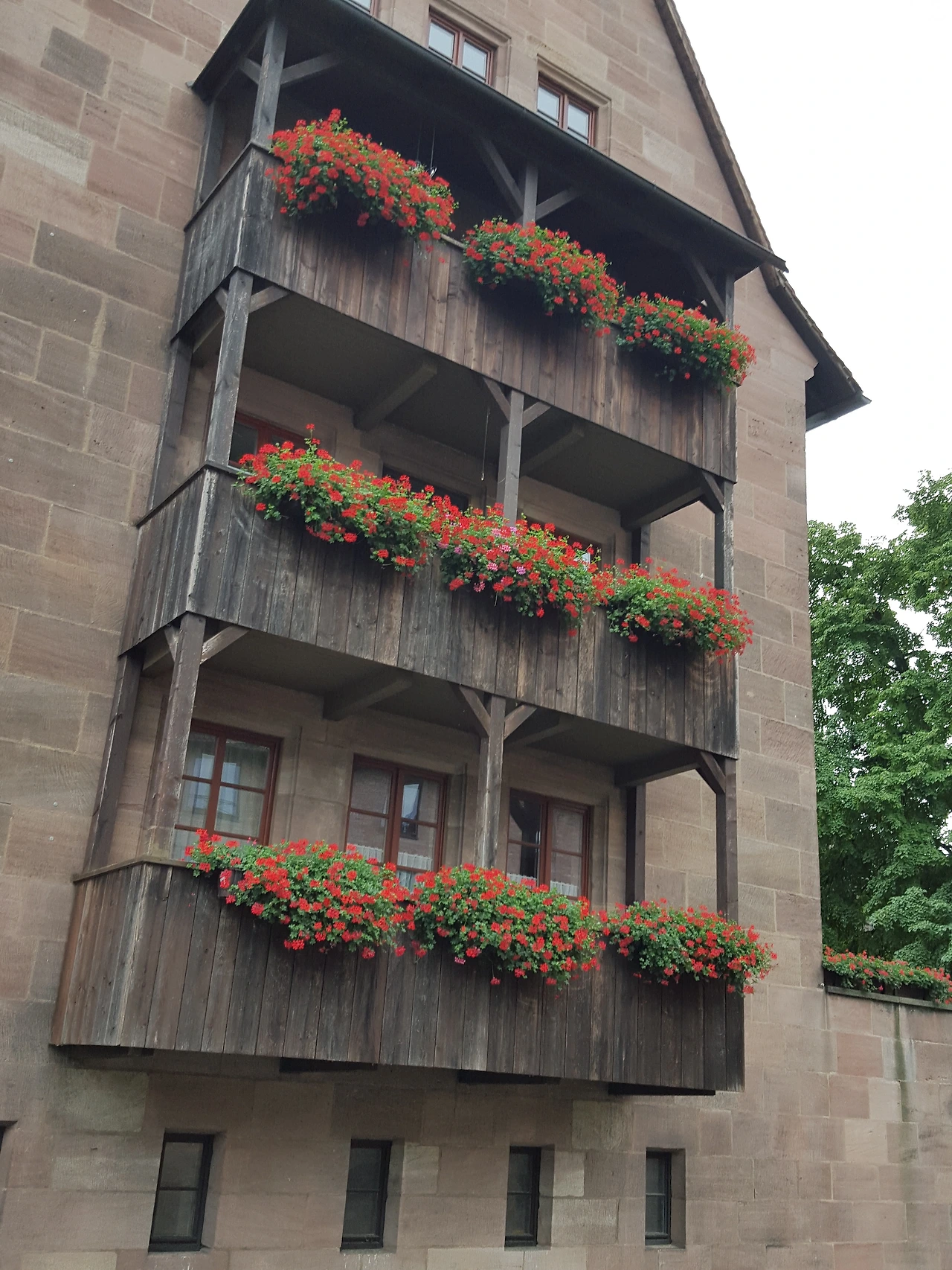 창가의 붉은 꽃들이 거리를 화사하게 비춰 주었다. 아름다운 꽃들을 보니 행복해졌다. 주택가를 거닐 때 건물 발코니에 식물들이 가득한 모습이 인상적이었다. 뉘른베르크에서는 평소에 자주 보았던 잿빛 콘크리트 건물들을 보기 힘들었다. 대신 붉은 벽돌조의 건물들이 많이 보였다. 성에 올라서서 보았던 뉘른베르크 전경이 왜 그토록 붉게 보였는지 알게 되었다.