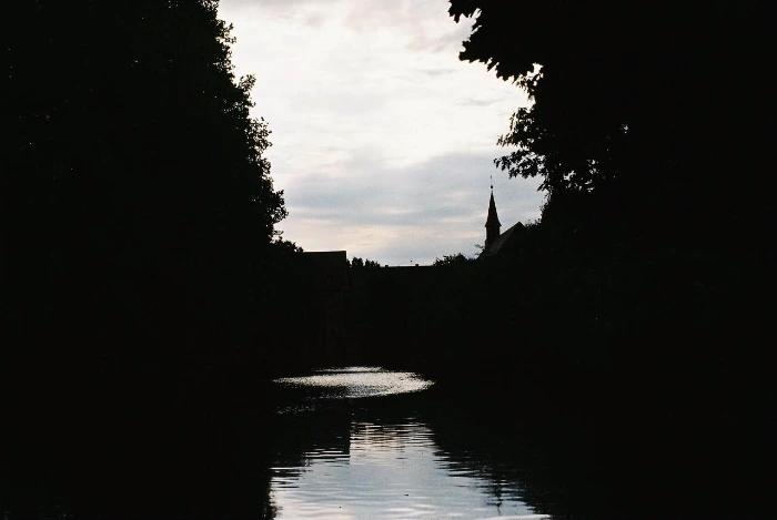 북적거리는 사람들을 뒤로하고 숙소를 향해 걸었다. 해질녘 즈음 한적한 주택가 옆 길을 지나가며 마주친 풍경이 참 아름다웠다. 지나다니는 사람이 단 한 명도 없었기에 평화로움을 한껏 느끼며 천천히 걸어갔다. 길 양쪽으로 우거진 초록 나무들과 물가에 비치는 붉게 물들어가는 하늘 그리고 다리, 교회의 뾰족한 지붕. 풍경들을 하나하나 눈에 담았다.