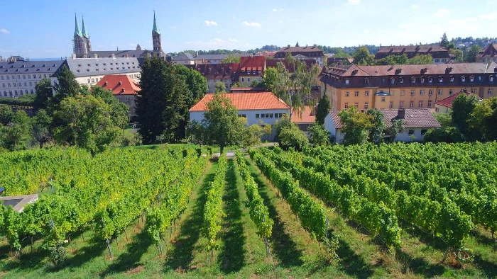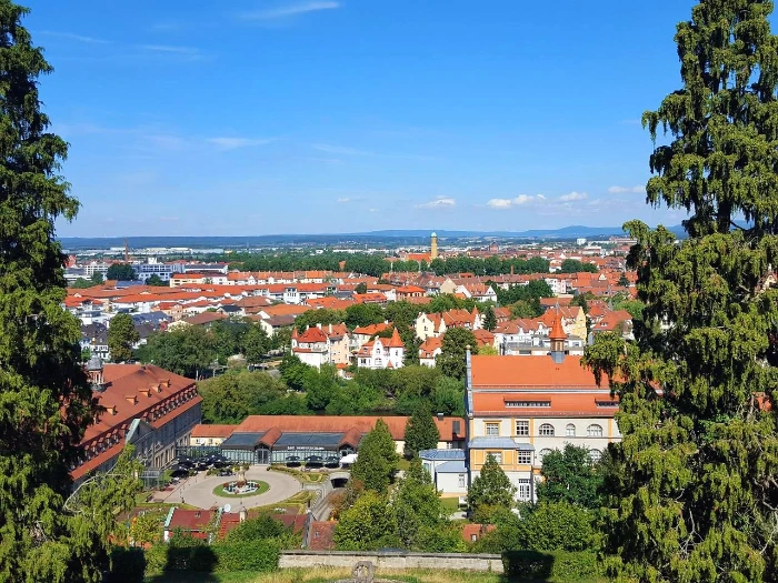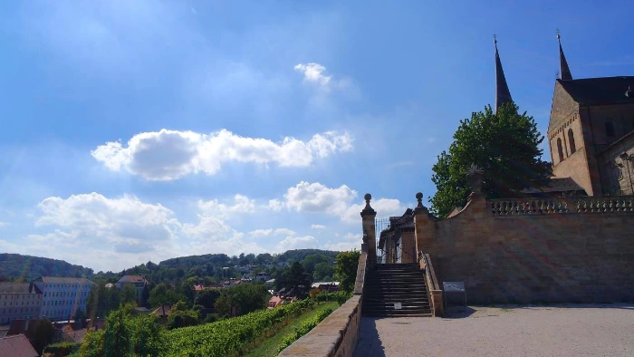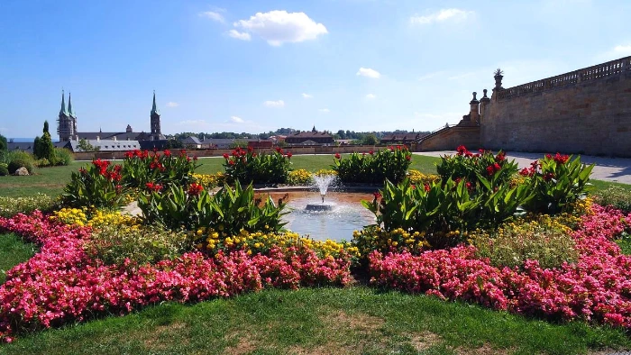 잘 가꾸어진 작은 정원을 지나가면 기가막힌 장관을 마주하게 된다. 밤베르크 구시가지가 한눈에 들어온다. 날이 좋아 선명하게 파란 하늘과 붉은 지붕이 대비되어 눈이 부시다.