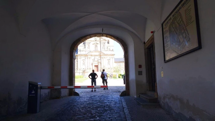 수도원 모습이 그려진 앙증맞은 표지판을 지나쳐오면 곧 수도원 입구로 들어설 수 있다. 입구를 지나오자 마자 보이는 거대한 건축물에 눈이 번쩍 뜨인다.