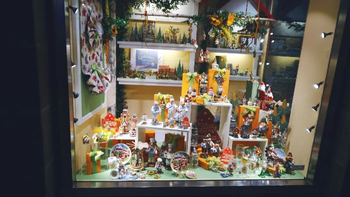 어둠이 내린 거리, 상점들은 거의 다 문을 닫았다. 문 닫힌 상점의 불 켜진 진열장 너머로 이색적인 소품들이 보였다. 크리스마스를 연상시키는 아기자기한 소품들, 하지만 가격은 무척이나 사악했다. 소소한 기념품을 하나 사고싶었건만, 낮에 구경을 왔더라도 어느 것 하나 못샀겠다는 생각이 들었다.