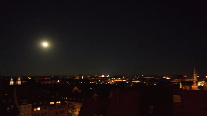어제도 보았던 뉘른베르크 성, 밤이 되니 조명으로 밝게 빛나고 있어 신비롭게 보였다. 때마침 훤한 보름달이 하늘을 환하게 비춰주고 있었다. 올라오기를 정말 잘했다는 생각이 들었다.
