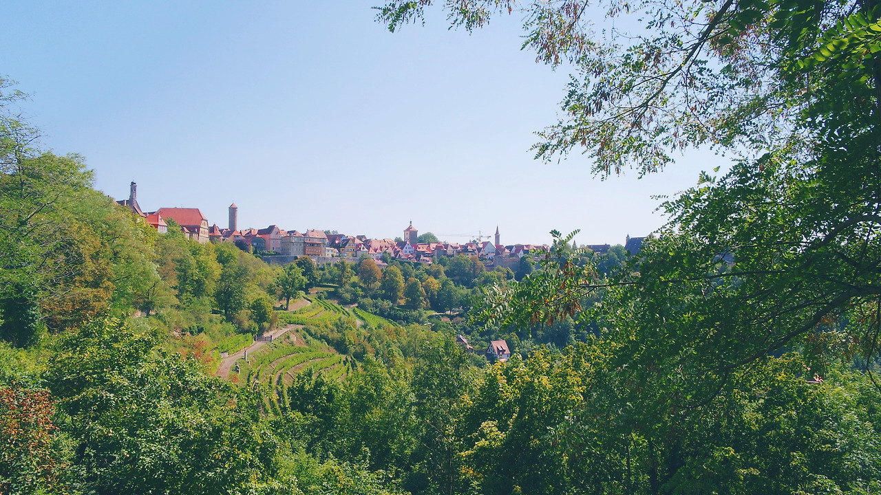 골목 끝에 다다른 나는 성벽에 기대어 멀리 보이는 풍경을 바라 보았다. 눈앞에 붉은 지붕으로 가득한 로텐부르크와 드넓은 초록빛 포도밭이 펼쳐져 있었다. 그리고 바람, 신선하고 상쾌한 바람이 부드럽게 내 살결에 닿았다.