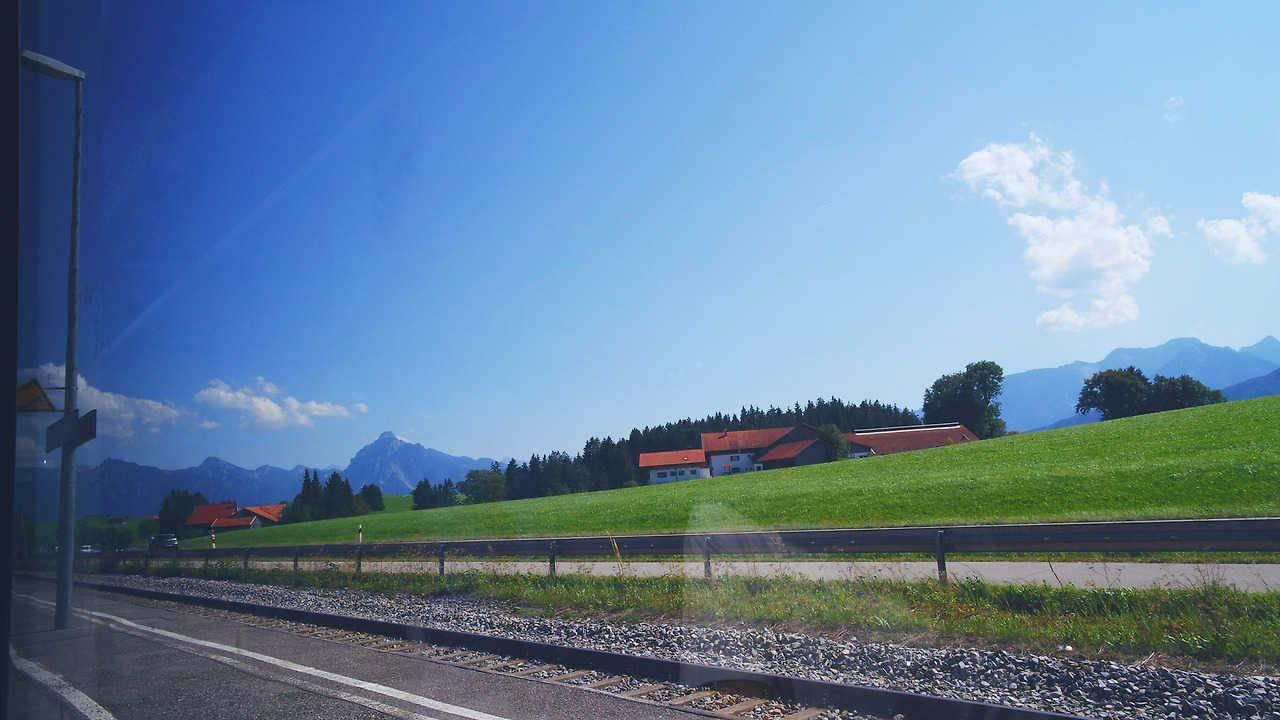 그렇게 우리 셋은 어쩌다 보니 같이 다니게 되었다. 퓌센 가는 길 차창 밖으로 보이던 풍경은 정말 아름다웠다. 푸른 초원과 새파란 하늘, 퓌센 가는 길 날씨가 어찌나 좋던지 모른다. 셋 다 탄성을 내지르며 열심히 창밖을 구경했다.