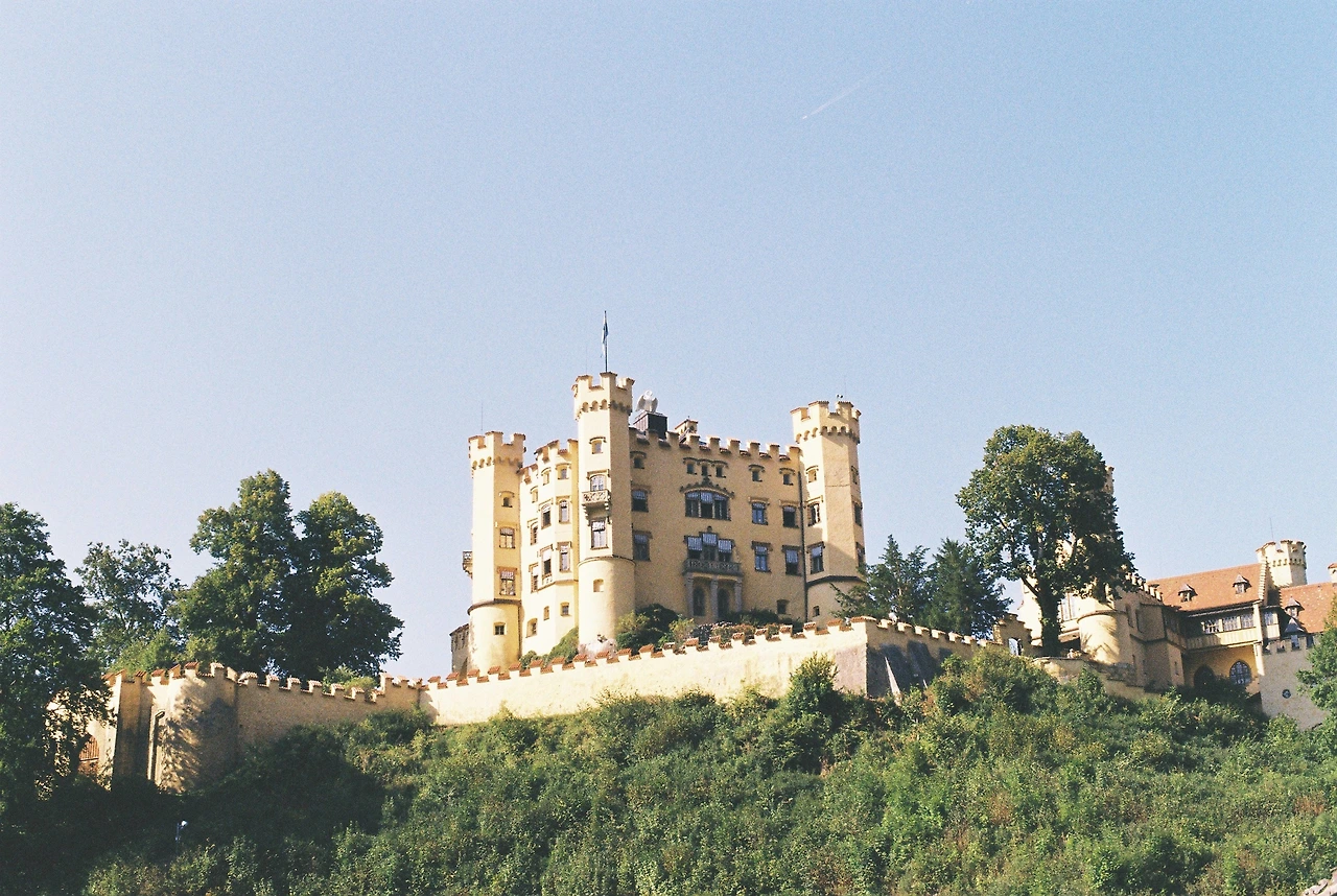 호엔슈반가우 성은 루드비히 2세가 어릴 적 살았다는 성이다. 고딕 양식의 노란빛 성체에 붉은 물결모양 테두리가 눈에 띈다. 손마디 둘 정도의 크기로 아주 조그맣게 보여서 레고로 만든 귀여운 성을 돌 위에 얹어 놓은 느낌이었다. 이 성은 노이슈반슈타인 성과 마주보고 있다. 때문에 루드비히 2세는 호엔슈반가우 성에서 지내며 노이슈반슈타인 성이 건설되는 과정을 지켜보았다고 한다.