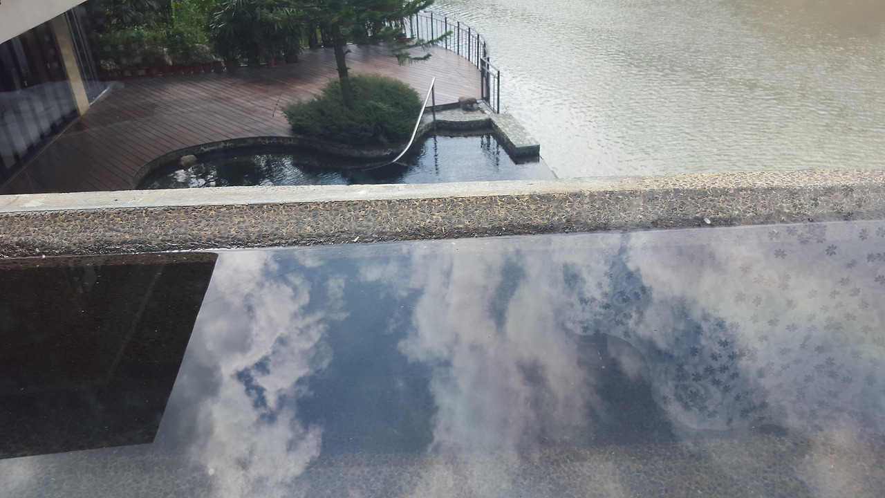 방금 전 조식을 먹을 때만 하더라도 에메랄드 빛 오묘한 색을 띄던 물이 어느새 흙탕물로 변해버렸다.