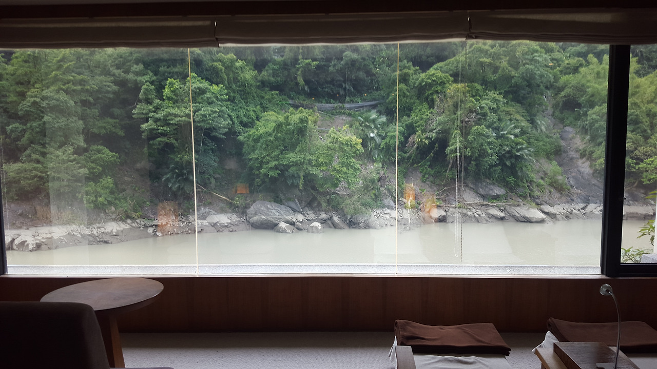 그나마 어제와 오늘 아침까지만 하더라도 아름답던 옥빛 우라이를 볼 수 있어서 다행이라 생각하며 온천물에 발을 담가 본다.