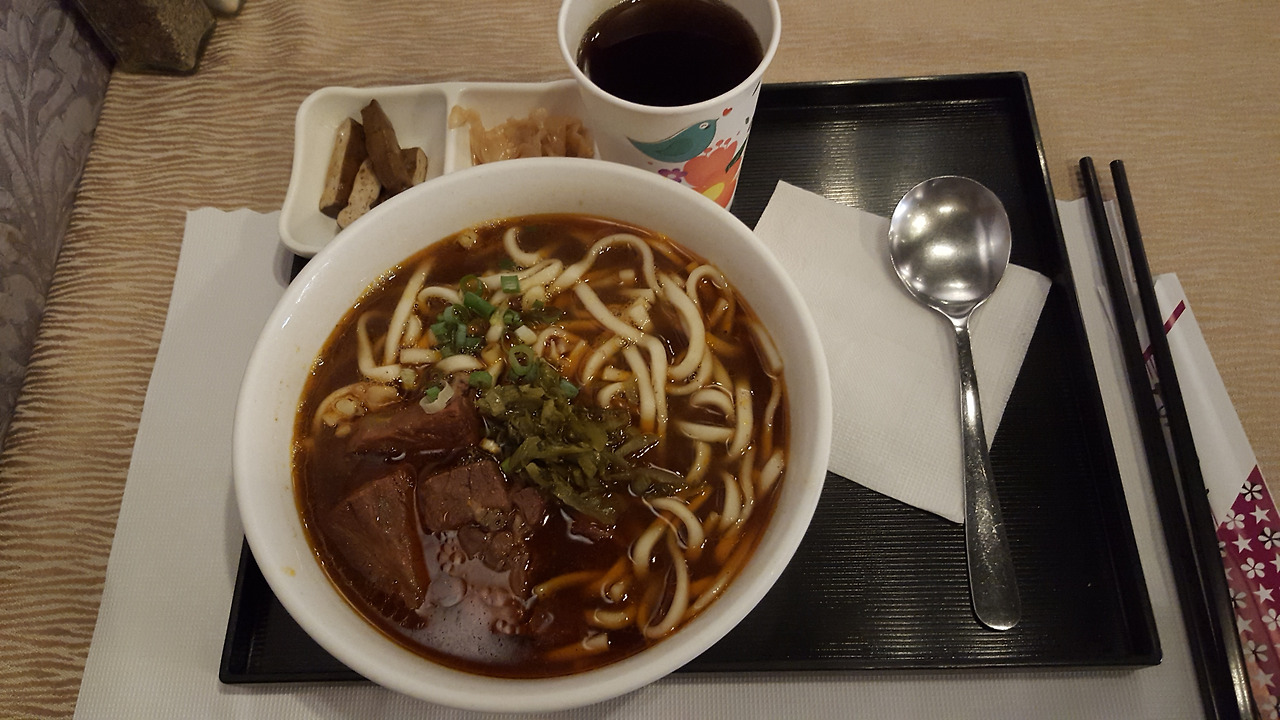 공항에 들어가서 우육면과 탄탄면을 하나씩 시켜놓고 먹었다.