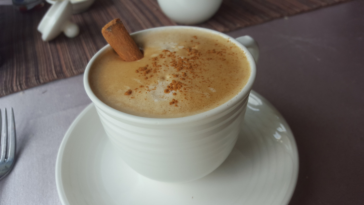 따뜻하고 몽글한 거품에 시나몬 스틱.