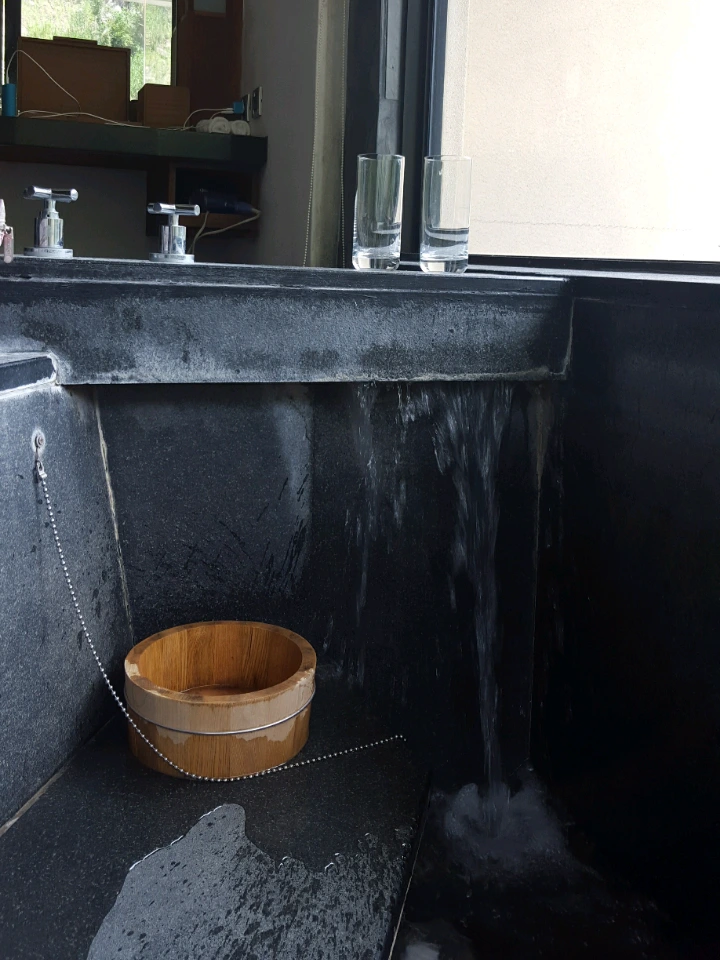 내가 물 온도를 조절하면서 온천물을 받을 수 있어서 너무 뜨거운 물에 오래있지 못하는 사람에게 참 좋다.