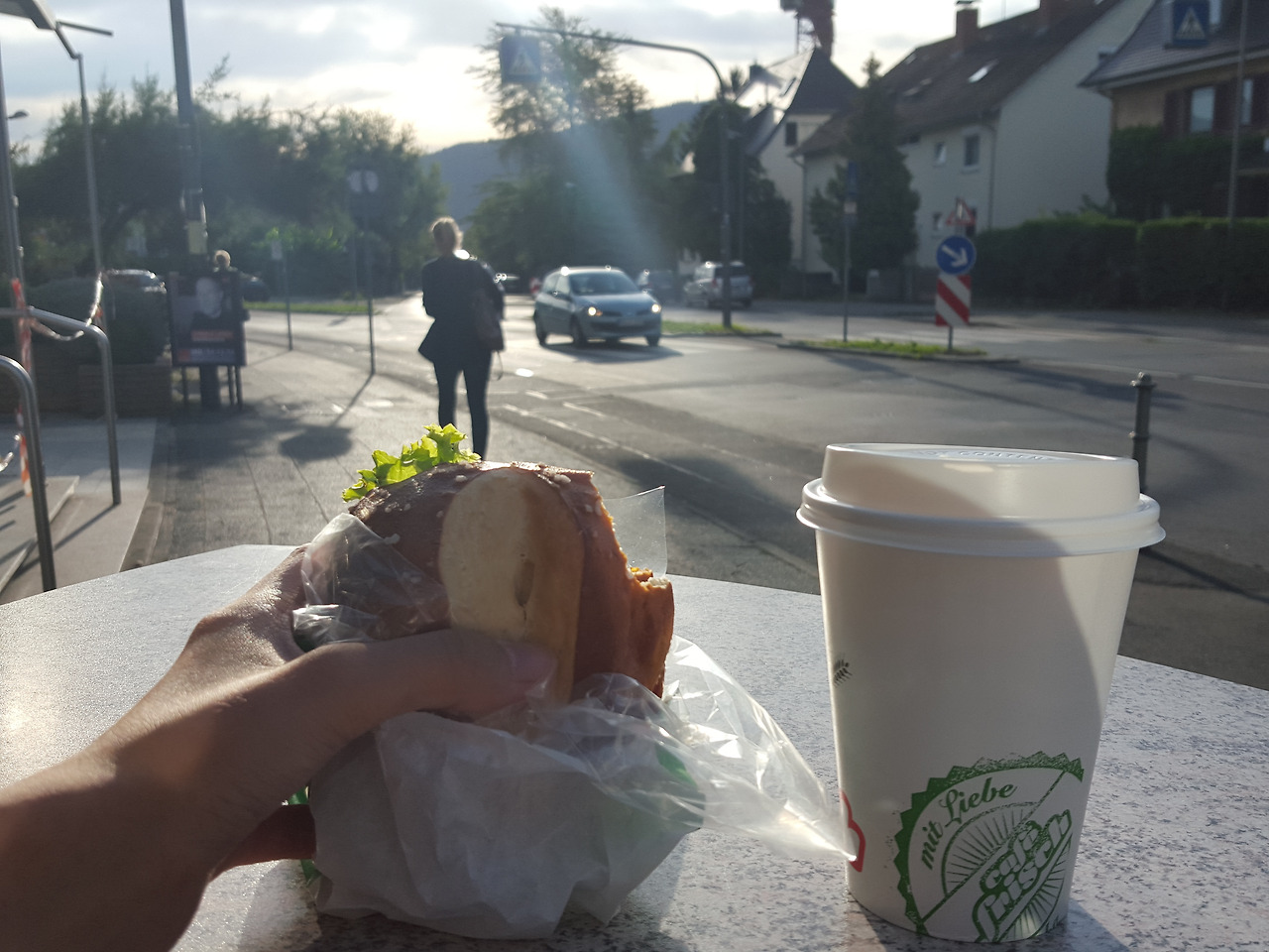 여기서 꽤나 충격적이었던 기억 하나가 있다. 이 날은 독일 벌(?)에 대해서 처음 인지하게 된 날이다. 샌드위치 가게에서 여러가지 케익들도 팔고 있었는데, 케익마다 꽤 많은 숫자의 벌들이 붙어 있었다. 내 눈에는 그 벌들이 케익을 냠냠 먹고 있는 것처럼 보였다. 카페 직원은 케익에 거의 파묻히다 싶은 벌들을 보고도 별 반응이 없었다.
