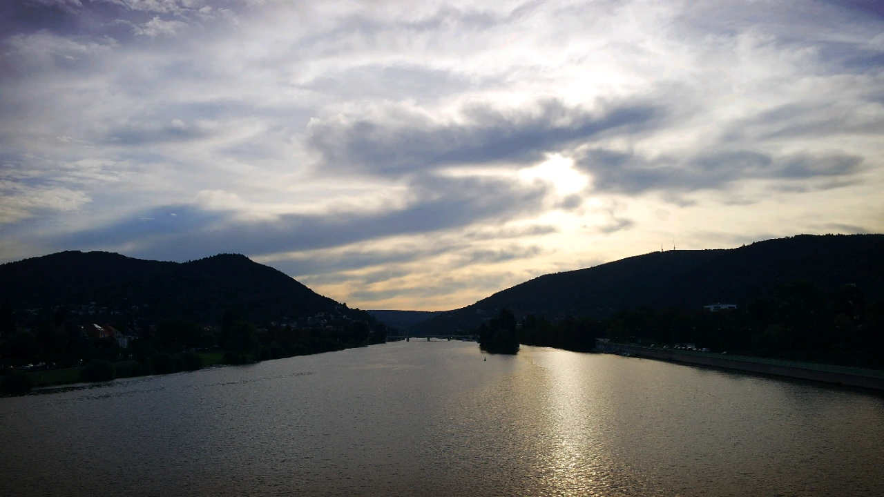 구글 지도를 보면서 숙소에서 철학자의 길까지 설렁설렁 걸었는데 가까운 거리는 아니였다. 가는 길 네카강을 가로지르는 다리를 건너며 해가 차오른 아침 풍경을 보는데 아름다웠다.