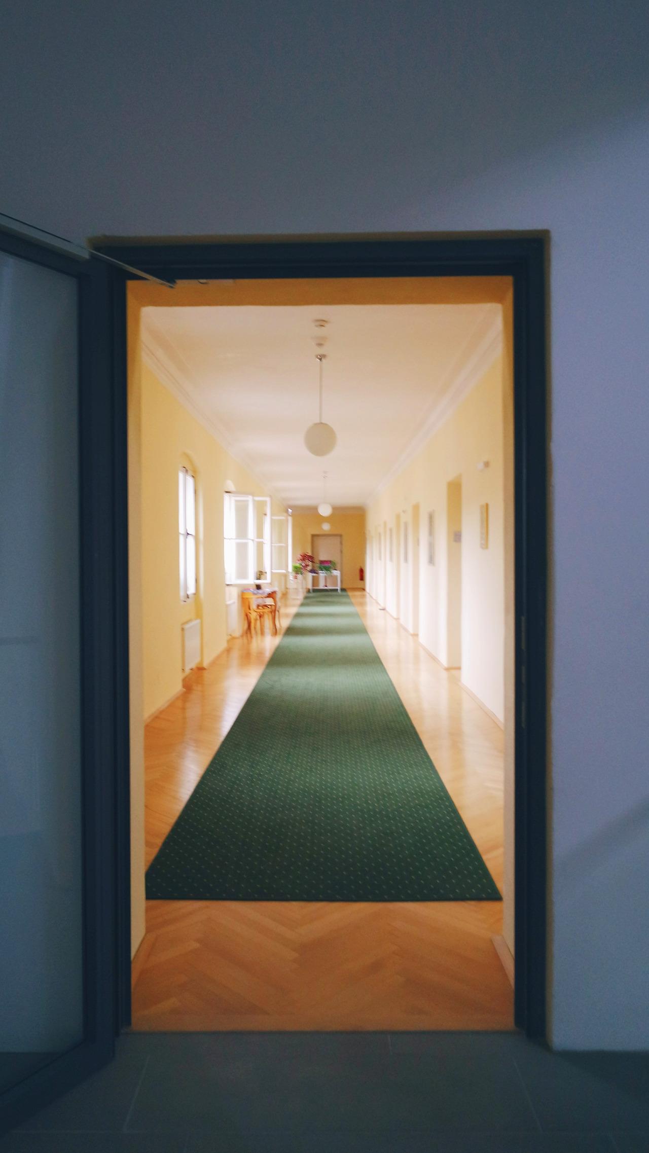 초록 카펫이 인상적인 복도