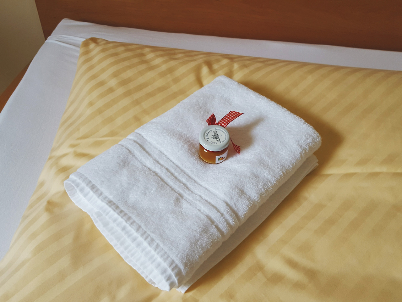 숙소 테이블 위에는 성경책이 놓여져 있었고 우측 벽면에는 십자가가 걸려 있었다. 성경책을 슬쩍 들춰보니 독일어가 잔뜩 적혀 있어서 바로 덮어 버렸다. 테이블 옆 침대 위에는 타올과 함께 앙증맞은 크기의 잼이 놓여져 있었다. 나를 위한 선물인가 보다.