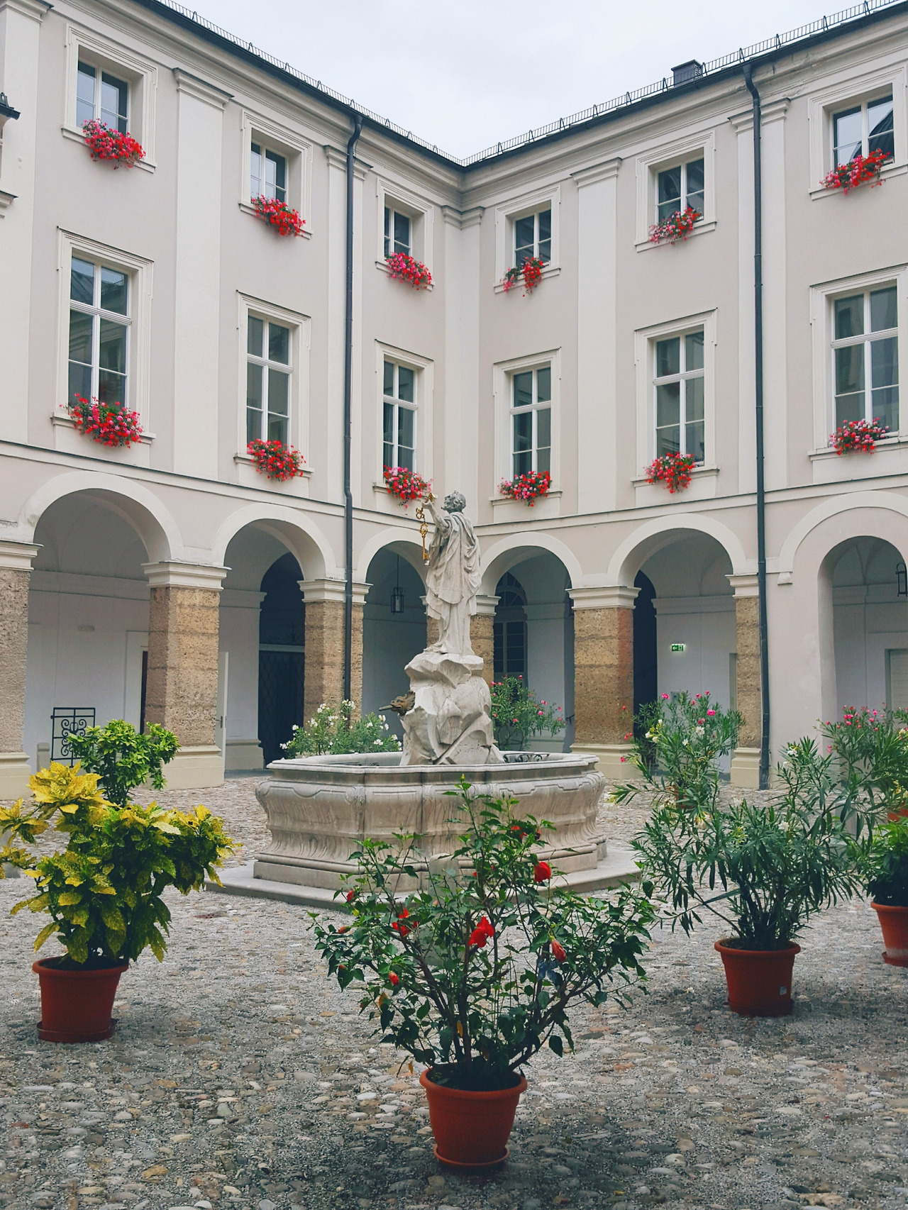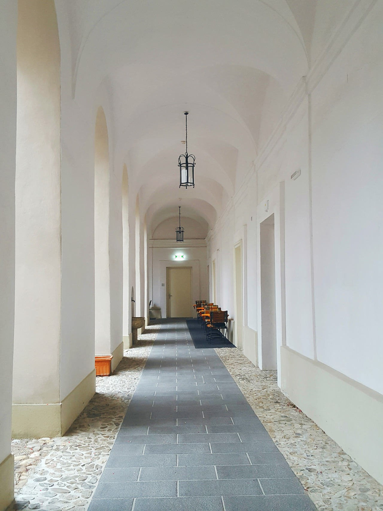 섬세하게 조각된 분수대가 정가운데 자리잡고 있었다. 그 위로 구름 꽉 낀 네모난 흐린 하늘이 보였다. 아치형 흰색 기둥이 네모난 공간을 둘러 싸고 있었다. 복도를 따라 캐리어를 드르륵 끌며 걸어갔다. 다행이도 엘리베이터가 있어 무거운 캐리어를 들고 계단을 오르지 않아도 되었다.