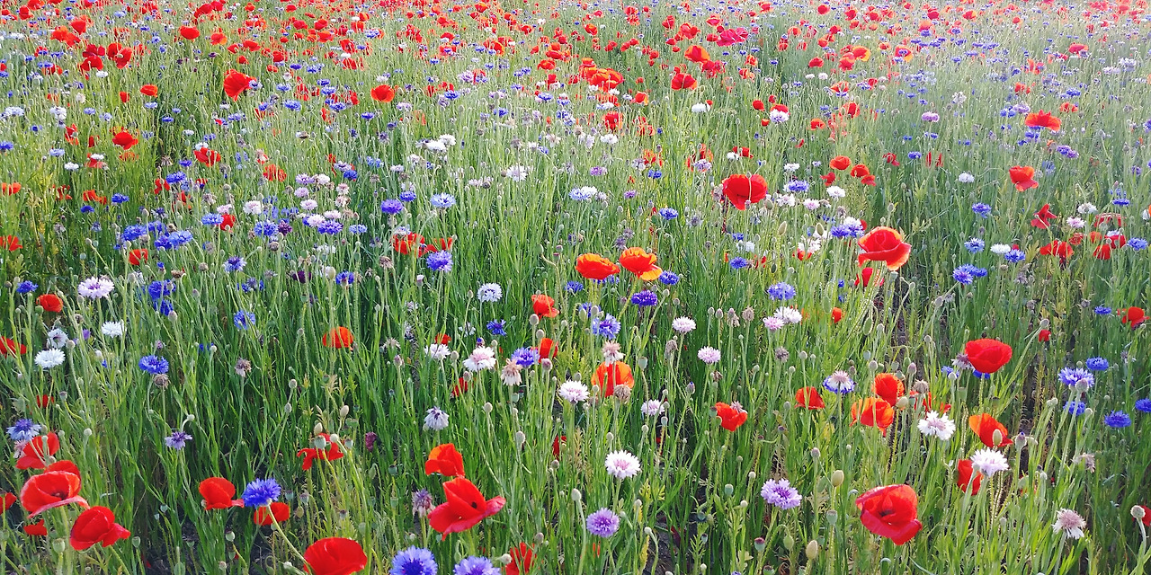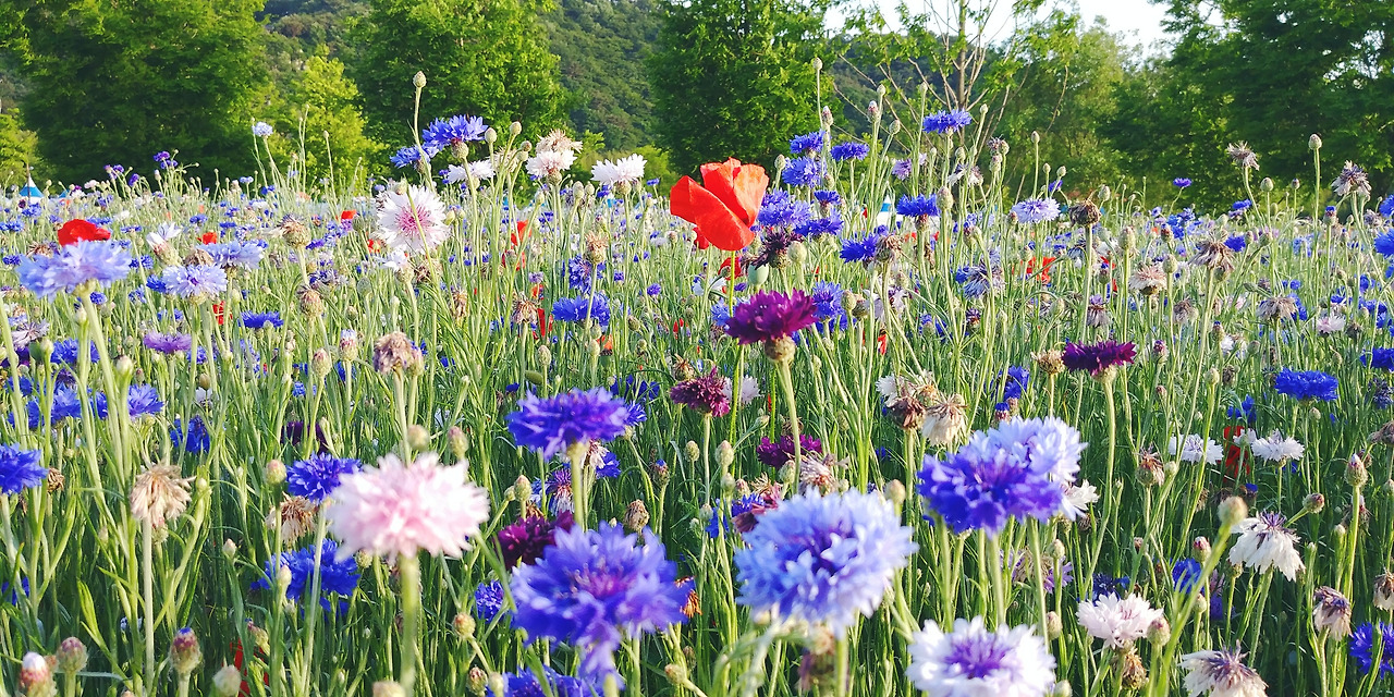파란 수레국화와 붉은 양귀비가 지천에 피어있었다.