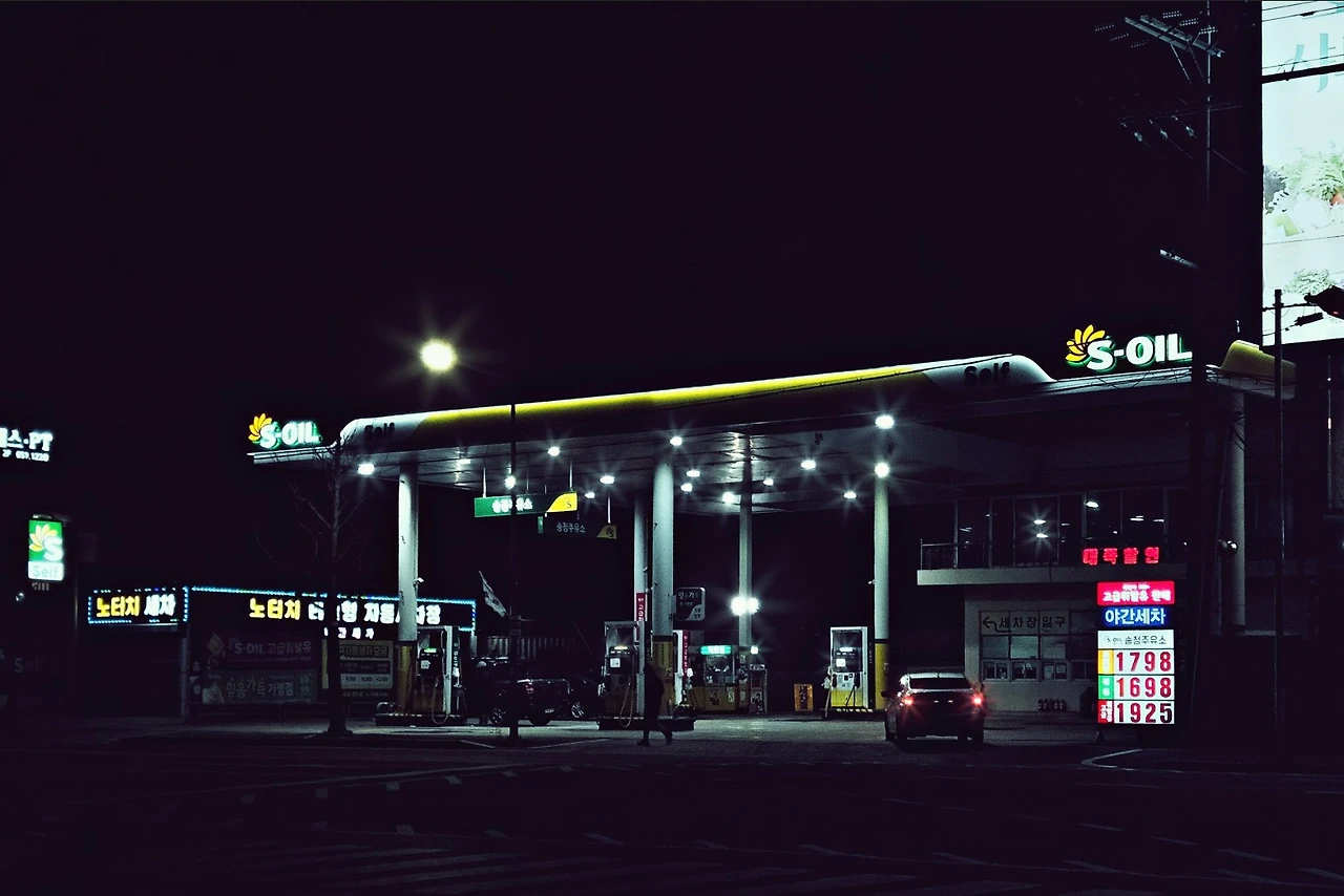 어두운 밤이었다. 도시의 대부분의 불빛이 이미 잠든 시간에 주유소만이 홀로 환하게 켜져 있었고, 주변은 거의 검은색에 가까운 어둠으로 가라앉아 있었다. 그 가운데에서 주유소의 형광빛은 유난히 또렷하게 떠올라 있었다. 따뜻하다기보다는 차갑고, 편안하다기보다는 거칠게 느껴지는 빛이었다.