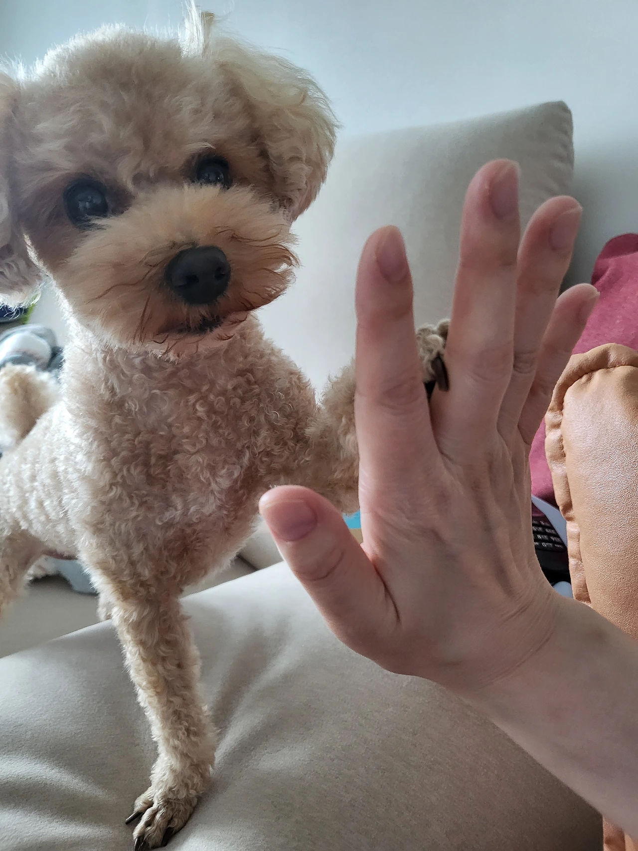 "야, 너 엄청 얌전하다. 우리 집 개들은 난리난린데." 하신다.