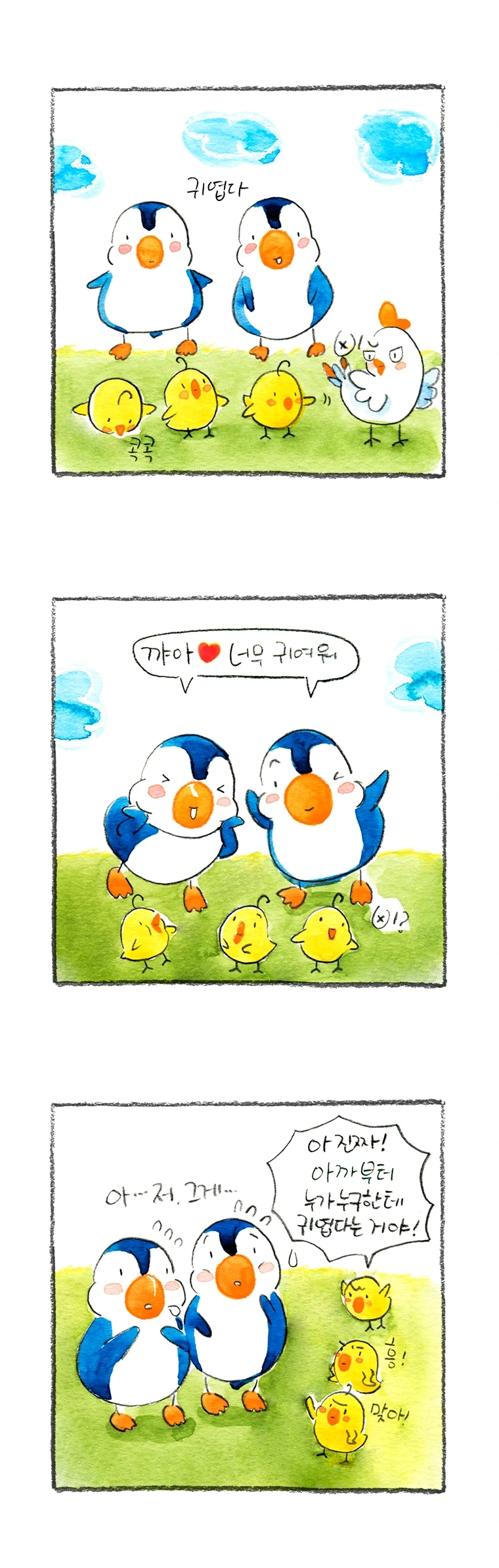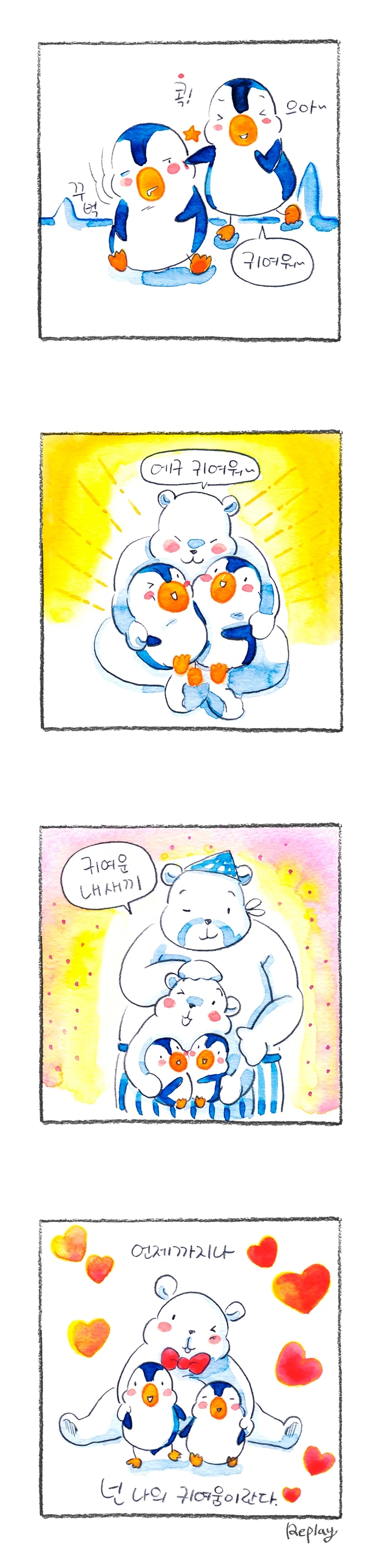 어릴 때는 늘 볼이 빨갰다. 믿을지 모르겠지만 볼이 빨갰던 이유는 늘 사람들이 “아휴~ 귀여워.”라며 볼을 꼬집었기 때문이었다. 나중엔 누가 볼을 만질라 치면 울기까지 했는데 많은 사람들이 볼을 꼬집은 후라 누군가 볼만 만져도 아렸기 때문이었다. 그랬던 아이가 자라 귀여운 그림을 그리는 사람이 되었다.