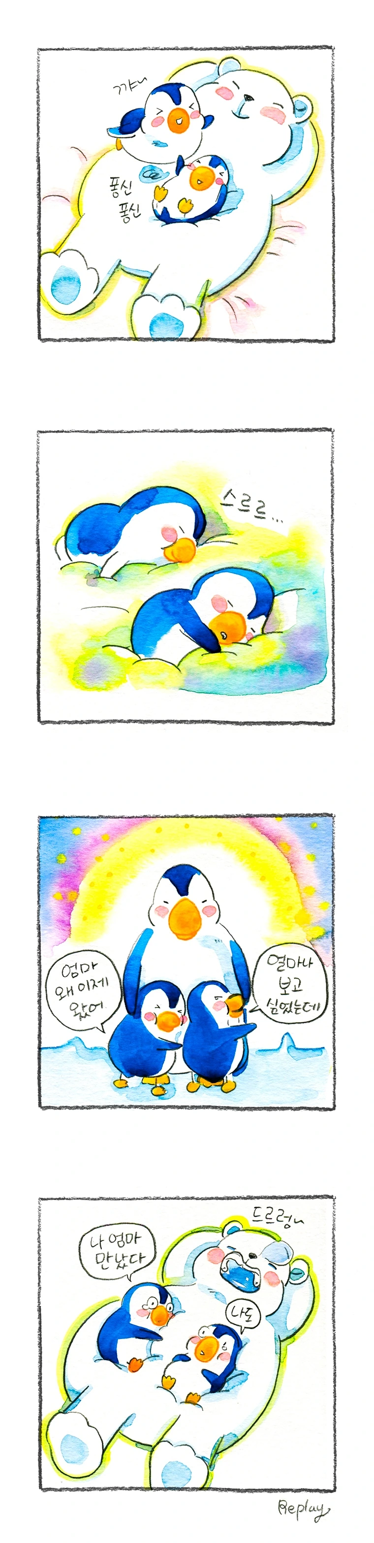 울며불며 찾을 거라고 생각했겠지만 땡! 틀렸다. 그때 난 곰돌이를 대신할 인형을 찾지 않았다. 일전에도 썼지만 쌍둥이인 나는 늘 언니와 함께 잠들었다. 늘 언니와 팔다리가 엉킨 채 잠들었으니 애초에 인형은 필요 없었는지도 모르겠다. 누워있는 언니 위로 떼구루루 굴러 언니의 자지러지는 소리를 흐뭇하게 들으며 이불속에 눕곤 했다. 불안할 때면 언니 손을 꼬옥 잡고 자면 잠이 잘 왔다.