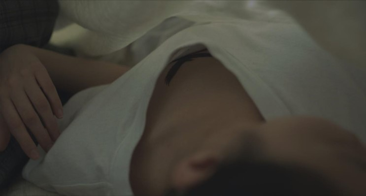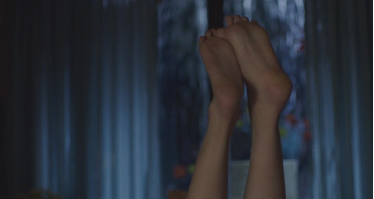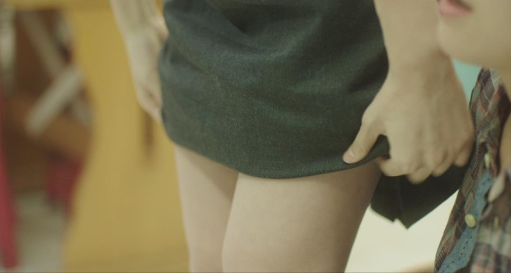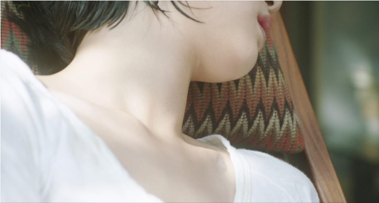 연신 싱글벙글한 은교, 눈빛은 그윽하다. 유리창을 닦는 척하면서 여체의 은밀한 부위를 슬쩍슬쩍 내보이는 수법으로 이적요의 마음을 휘어잡는다. 굳이 손이 안 닿는 유리창의 높은 곳을 닦으며, 흰 티셔츠 사이로 잘록한 허리를 보였다 감췄다 보였다 감췄다를 연신 반복한다. 은교는 타이밍도 잘 안다. 감수성이 깊어질 때로 깊어진 야심한 시각. 그것도 비가 세차게 내리는 늦은 밤에 갑자기 은교가 이적요의 집에 찾아간다. 엄마에게 맞아서 집에 못 들어간다는 핑계를 대며 비를 홀딱 맞아 젖은 교복을 입고 서성인다. 그런 그녀에게 입을 옷을 내주고 이적요는 젖은 교복을 드라이기로 말린다. 그때 은교는 침대에 누워 교태를 부리기 시작한다. 무릎을 세우고 누워 큰 반바지 사이로 아무렇지 않게 속살과 팬티를 드러낸다. 마치 젖은 몸을 말리듯 이불에 몸을 비비며 살짝살짝 감칠맛 나게 속살을 보여준다. 이적요는 은교의 아름답고 앳된 몸을 눈으로 힐끔힐끔 더듬는다. 마치 죄라도 짓는 듯이. 은교의 계획된 시나리오라는 것도 모른 채.