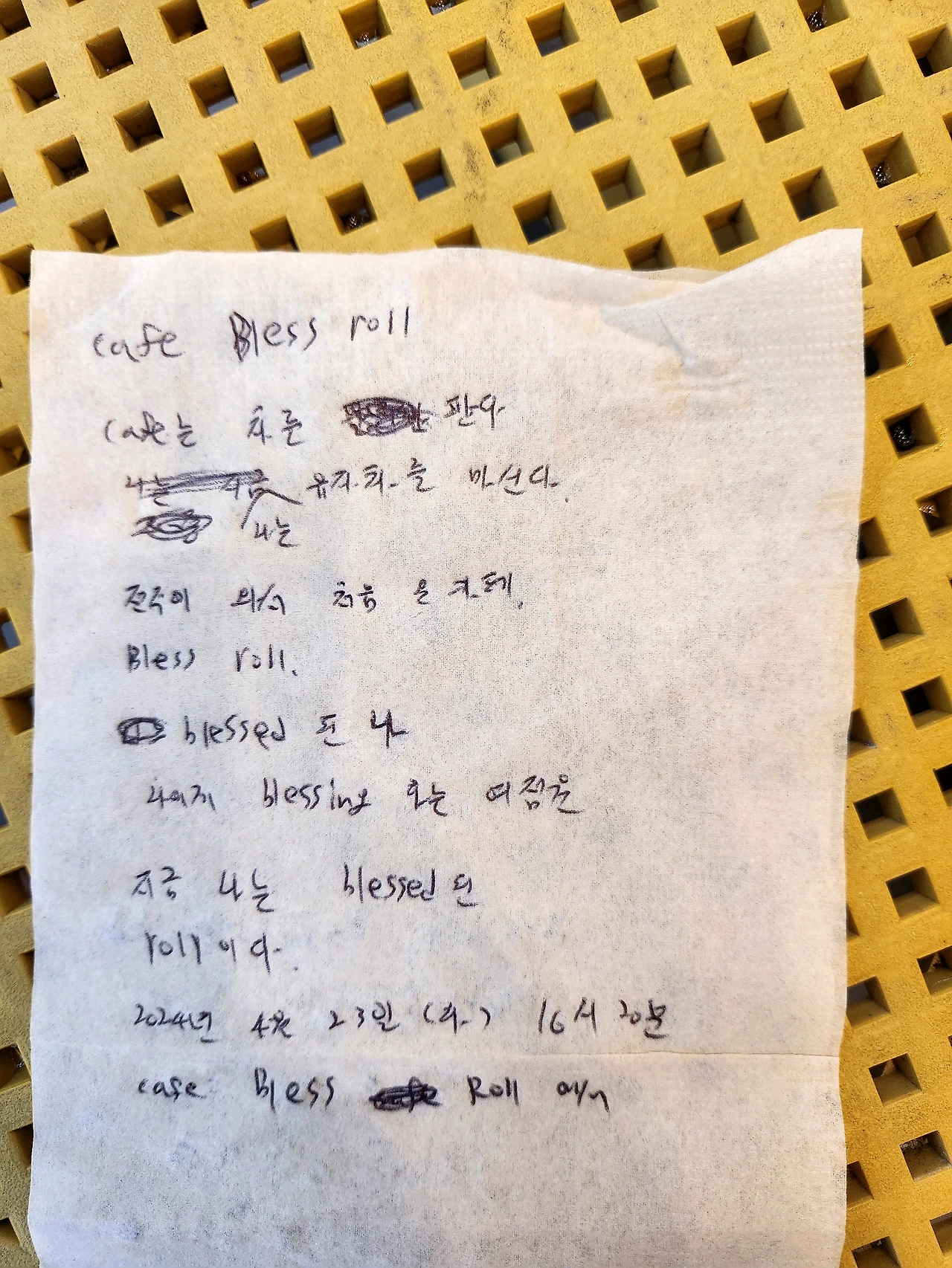 갑자기 전주 카페에서 휴지에 #자유시를 써봤다.