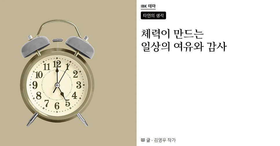 그런데 얼마 전, 뜻밖의 일이 있었다. 아무도 보지 않을 거라 생각했던 내 글이 누군가의 눈에 들어온 것이다. 체력에 대한 내 생각을 정리하며 써 내려간 글을 IBK 매거진 편집 담당자가 운 좋게도 읽어준 것 같다. 나의 일상과 소소한 생각을 담아둔 글이었는데, 그 글을 좋게 봐주신 담당자가 매거진에 원고를 써 달라는 제안을 해준 것이다. 처음에는 정말 놀랐다. 특별히 관심을 받으려 한 것도 아니었고 그저 내 생각을 글로 정리한 것뿐인데 그 글이 누군가에게 닿아 새로운 기회로 이어질 줄은 몰랐다.