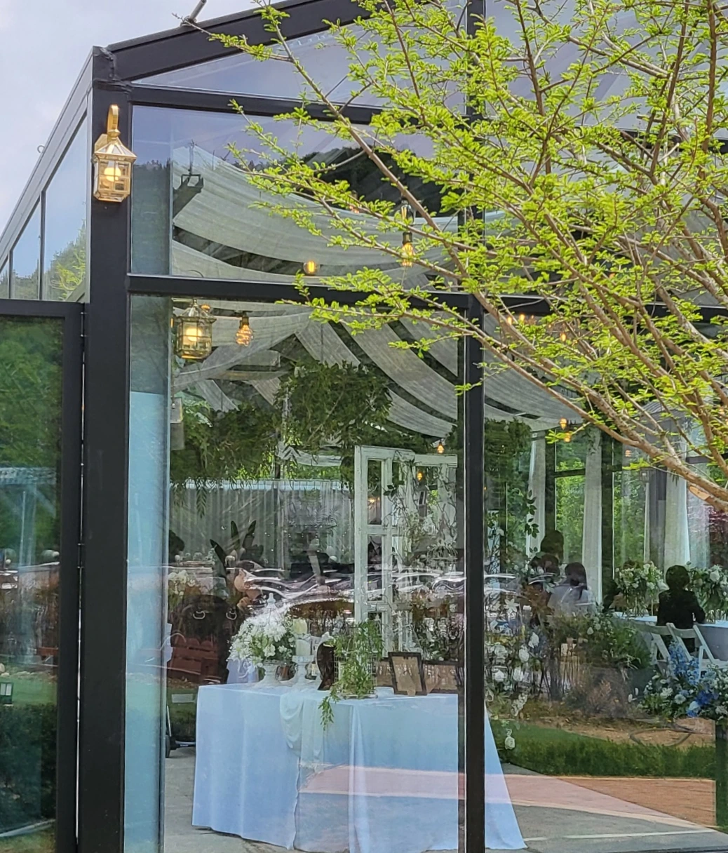 정안수만 떠놓고 마을회관에서 식을 하려 했던 우리는 부모님의 역성(시골로 올 때도 무덤덤하던 양가 부모님들은 결혼식에 대해서는 확고하셨다)에 적당한 타협점으로 교외 레스토랑에서 가까운 사람들을 불러 야외 결혼식을 올렸다.