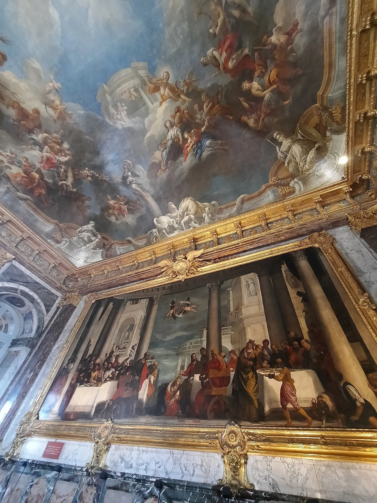 프랑스 바로크 로코코의 특징 --> '빈벽 없이 장식으로 꽉 채움' 벽이 비어있는 것을 용납지 아니하고 천장부터 바닥까지 그림, 조각, 문양, 색깔이라도 입혀서 일관적인 투머치 장식으로 채웁니다. 그래서 베르사유의 방에 들어가면 폰을 아무렇게나 막 돌리면서 사진을 찍어도 이쁜 피사체가 사진을 가득 채우죠. 미니멀리즘에 동참하고 있는 21세기 주부의 눈에는 무척이나 헤비 한 장식들이었습니다.
