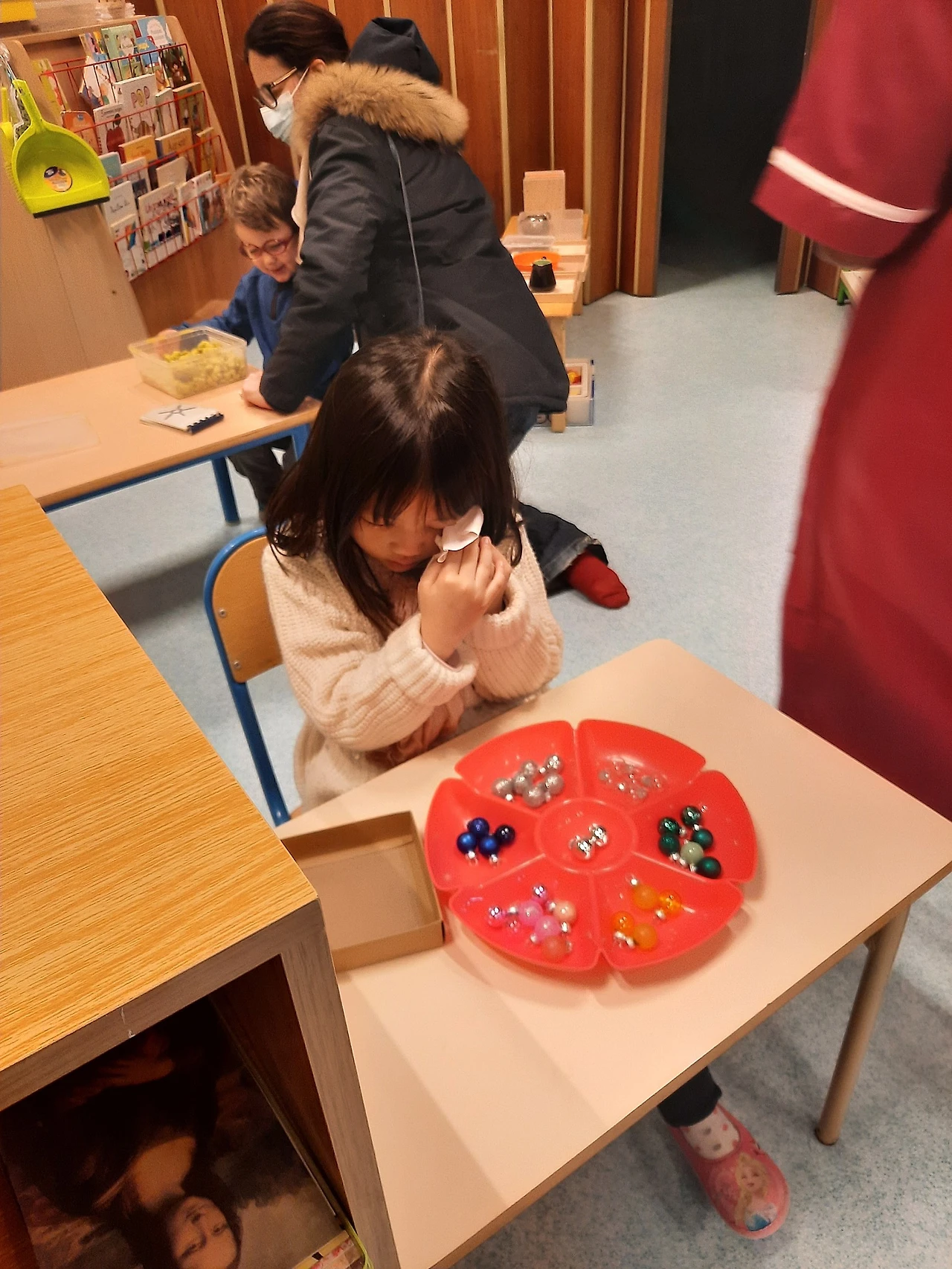 셋째는 집 근처에 있는 초등 병설 프랑스 공립 유치원에 보냈어요. 한 반 스무 명 정도였고, 자기 나이끼리만 구성된 반도 있고, 만 3세부터 만 5세까지 섞여 있는 반도 있었어요. 문화 충격이 몇 개 있었는데, 일단 화장실이 남녀 공용인데 화장실 칸에 문이 없어요! 독서실 책상처럼 칸은 있는데 앞에 문이 안 달려 있어서 용변 보는 모습이 그대로 다 보여요. 어릴 적부터 자연스럽게 남녀의 차이를 알려주는 교육인지.. 낮잠 시간엔 20명이 베개와 이불을 공유해요. 코로나 시국이 아니더라도, 개인 이불이랑 베개를 챙기고, 매주 빨아서 보내는 한국 엄마들은 기겁할 시스템이죠. 등교 첫날 가정통신문에는, "머릿니가 돌고 있습니다. 해마다 이 계절이면 유행하는 머릿니를 가정에서 잘 관리해 주세요"라고.... 학교만 관리하면 될 것 같은데.. 머릿니라뇨.(*.*);