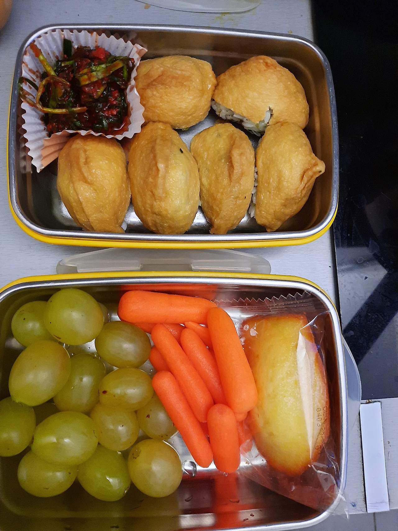 다자녀 가정이라 급식비 부담도 컸던 저는, 한식파인 남편의 도시락을 포함해서 3년간 매일 세 개의 도시락을 싸야 했습니다. 전 국민 무상 급식 천국인 한국에서 도시락을 아침마다 싸는 주부가 있을까요? 저녁마다 쌓이는 도시락 설거지 드높고, 겨울이면 보온 도시락, 여름이면 아이스팩까지... 프랑스 주부 살이의 귀찮았던 두 축은 '등하교 노동과 도시락 노동'이었답니다. 일부 외동 엄마들은 밥에 눈, 코, 입도 만들고, 소시지 잘라서 문어 만드는 그런 깨알 재미 도시락도 싸 보내 긴 하지만, 다자녀 맘인 저는 방심하다가 한 아이에게 밥 두 개, 한 아이에게 반찬 두 개를 넣어 보내기도 했답니다.