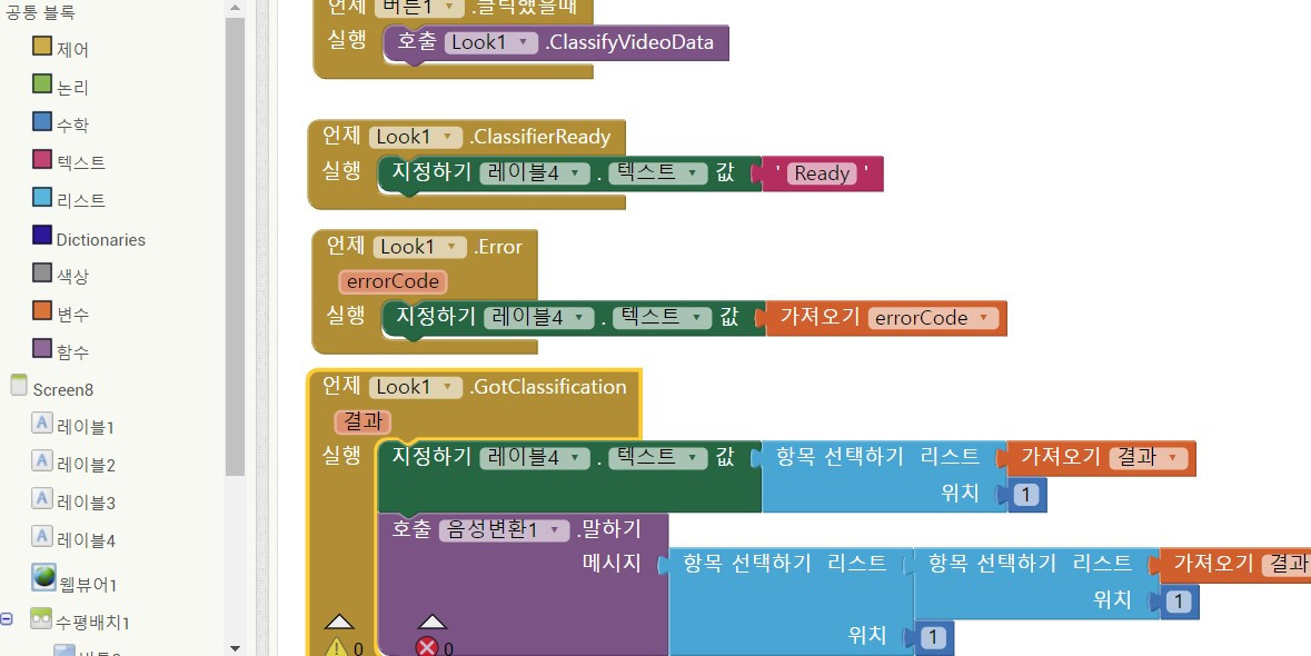 무릇 회사의 목적은 이윤 추구라지만 우리 회사의 목적은 사장과 과장이 지금까지 해보지 못한 경험을 해보는 것이었고, 거기엔 구글 플레이에 앱 등록하기가 포함되어 있었다. 기획 회의(회식) 후 물놀이 일정 때문에 코딩 시작이 늦어지긴 했지만 마음먹고 노트북 앞에 앉으니 진도가 제법 잘 나갔다. 텍스트가 아닌 블록을 이용하는 것이라고 해도 내가 조립한 코딩 블록으로 '정답이 맞으면 다음 화면으로 넘어가기', '폰을 흔들어 소리 내기', '사물 인식률 나타내기' 등이 구현되니 대단한 기술자라도 된듯한 기분이 들었다.
