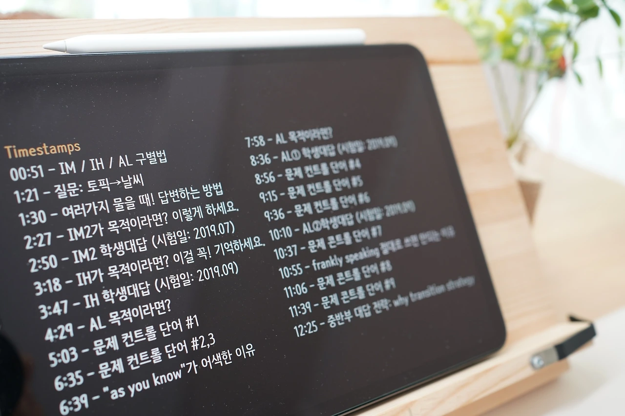 유튜브에 살고 계신 오픽 선생님은 두괄식으로 답변하는 게 중요하다고 누누이 강조를 하셨다. 기왕 치는 시험, 좋은 점수를 받고 싶다는 생각으로 가득 찬 나는 선생님 말씀을 잘 들어야 했다. 답변을 할 때 중심 내용부터 먼저 말하면 두괄식이 된다. 처음엔 그 정도쯤이야 싶었다. 노래 한 곡 구성지게 부르면서 시작하라는 것도 아니고 말하는 순서만 신경 쓰면 될 일이 아닌가. 그런데 막상 연습을 해보니 생각처럼 쉽지가 않았다. 두괄식이 성립하려면 중심 내용에 관련된 내용이 뒤따라야 한다. 두어 문장이 전부인 답변에서는 두괄식이니 미괄식이니 하는 구성을 아예 찾아볼 수 없으니까. 결국 두괄식이 가능하기 위해서는 하나의 주제에 대해 여러 문장으로 이어서 말할 수 있는 능력이 있어야 했다. 그런데 그런 능력이 부족하다면? 일단 말할 수 있는 내용을 모조리 다 말해서 조금이라도 답변의 길이를 늘이고 싶은 충동에 휩싸이게 되는 것이다.