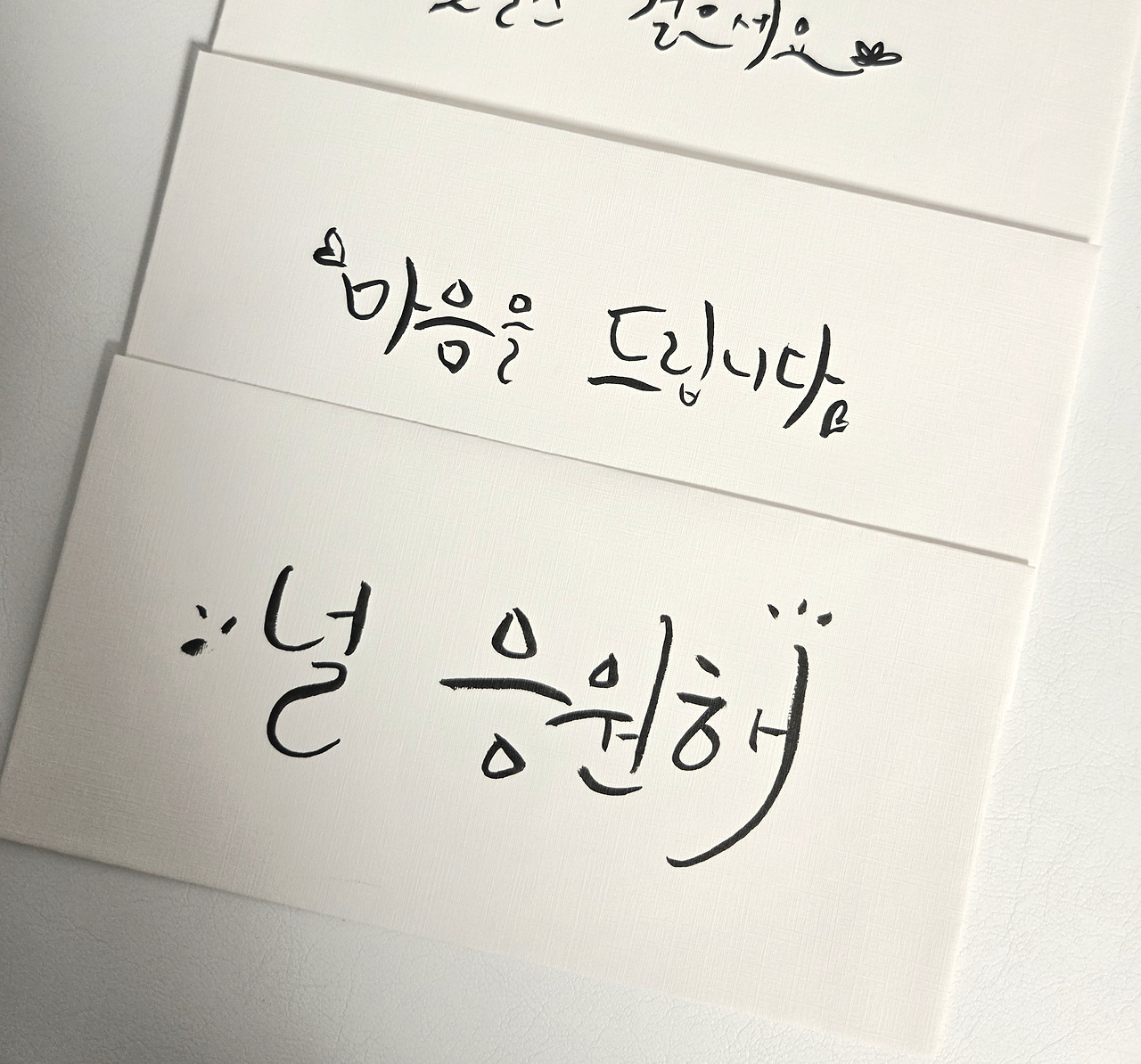 하필 그날 첫 캘리그라피 수업을 듣기로 되어있던 날이라 갈지 말지 치열하게 고민했으나 부은 눈이 가라앉아서 , 그리고 안 가기엔 아까워서 공방으로 향했고 인생 첫 캘리그라피를 그렸다
