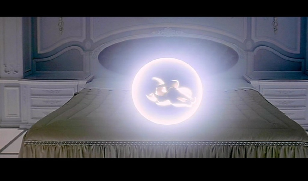 2001: 스페이스 오디세이 마지막 장면. 낡은 침대 위, 정적인 공간 안에서 등장하는 광휘 속의 태아-그것은 인간의 진화를 넘어선 재탄생의 은유다.